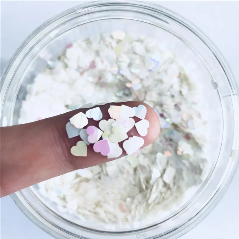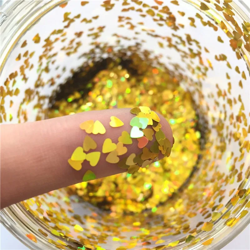PET ультратонкие блестки в форме сердца, 3 мм, смешанные голографические лазерные серебряные блестки для творчества, украшения для ногтей, 8 г
