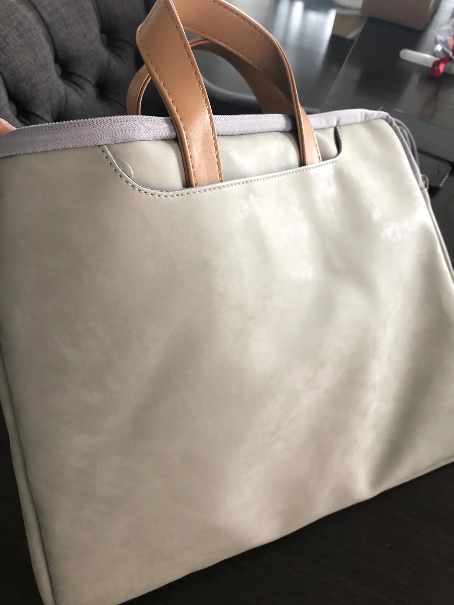 Очень довольна покупкой на все сто процентов! Во первых порадовало качество, все швы идеально ровные,хорошо прошитые ручки,молния,липучки на боковых отделах. Вместительная - один основной отдел на замке и два боковых на липучках. Плюс маленькая сумочка (косметичка) на замочке, в которую помещается зарядка и мышка! Эту маленькую сумочку легко вместить в основную с ноутбуком и ещё пару тетрадей или папок. Внутри мягкий приятный материал плюш и подклад для защиты вашего ноутбука. Сумка очень красиво смотрится со стороны, понравился цвет, сочетание основного с коричневым, смотрится недёшево. Очень хорошие плотные ручки! Я долго выбирала модель сумки для ноутбука на Али и в наших магазинах и не пожалела, что остановилась на данном продукте! Кстати ещё очень порадовала довольно таки быстрая доставка. С продавцом не общалась, так как на то не было надобности. Заказывайте не пожалеете!