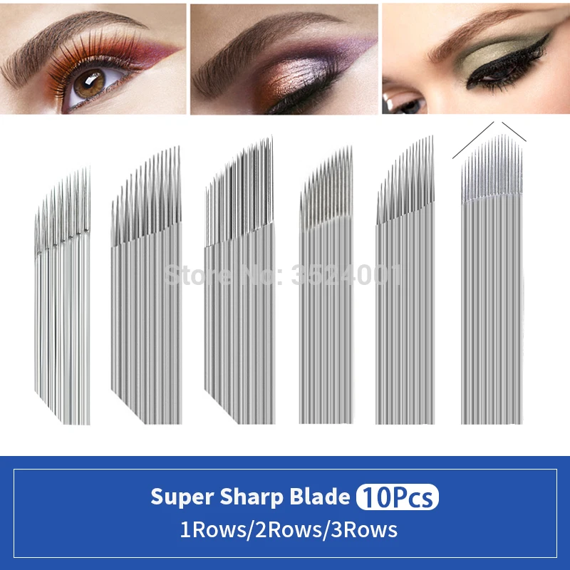 10 шт., 3 ряда, 2 ряда, тату-иголки, аксессуары для шитья, Перманентный макияж, стерилизованное микроблейдинг, игла для бровей, губ