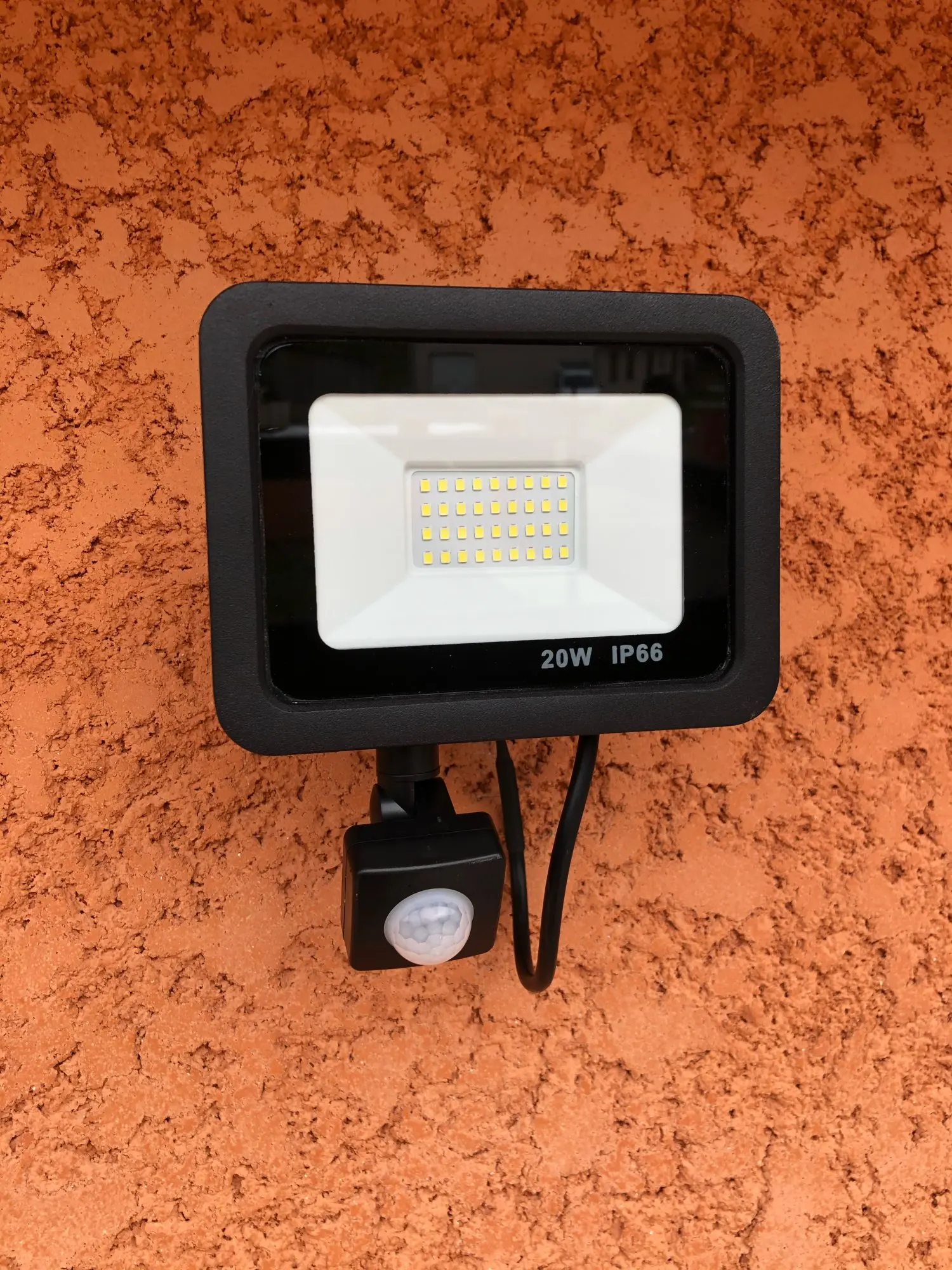 Мощный металлический светильник хорошего качества, включая металлический пресс для одежды. Мы жалеем только о низкой длине кабеля. Также имеется цветной светодиод. Я купил 50 Вт, это немного слишком много для входа в сад. Я думаю, что 30 Вт больше подходит.