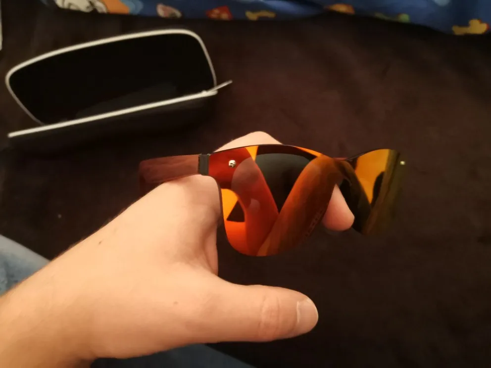 Очки хорошие на свою стоимость, ощущения наклеенной пленки на линзу, линза из пластика, душки из дерева, впринципе цена - качество. доставка 18 дней до Одессы. продавцу спасибо, рекомендую!