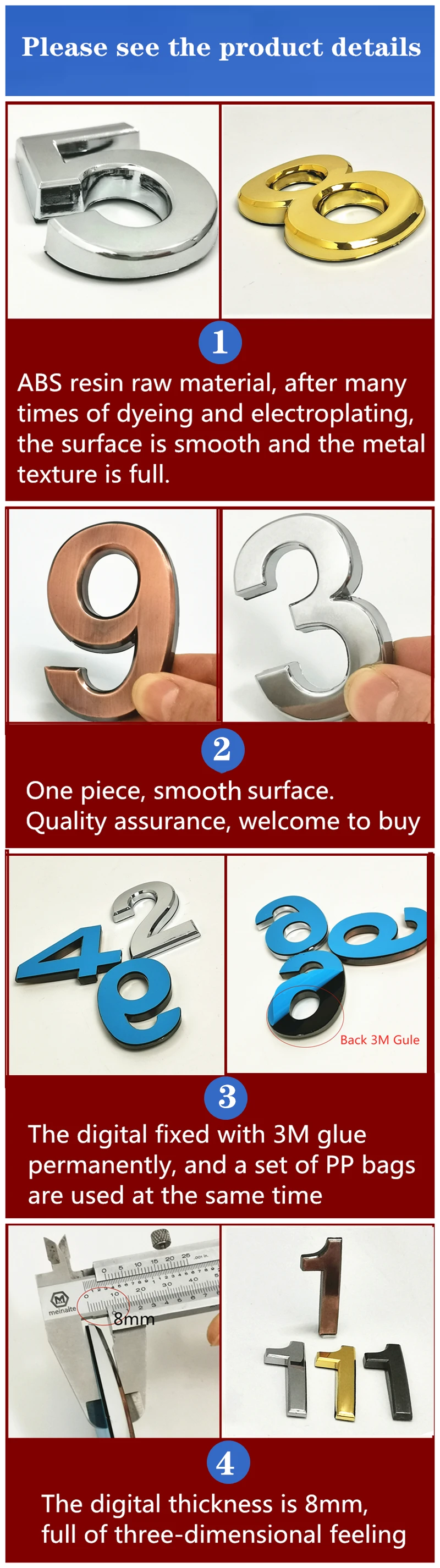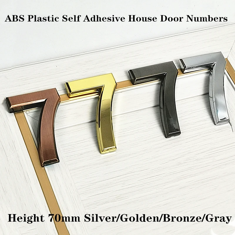 Высота 70 мм, серебристыйзолотойБронзовыйсерый АБС-пластик, самоклеящиеся номера дверей дома, адресная табличка, бронзовые цифры на двери гостиничных номеров, домов, квартир, табличка с наклейкой