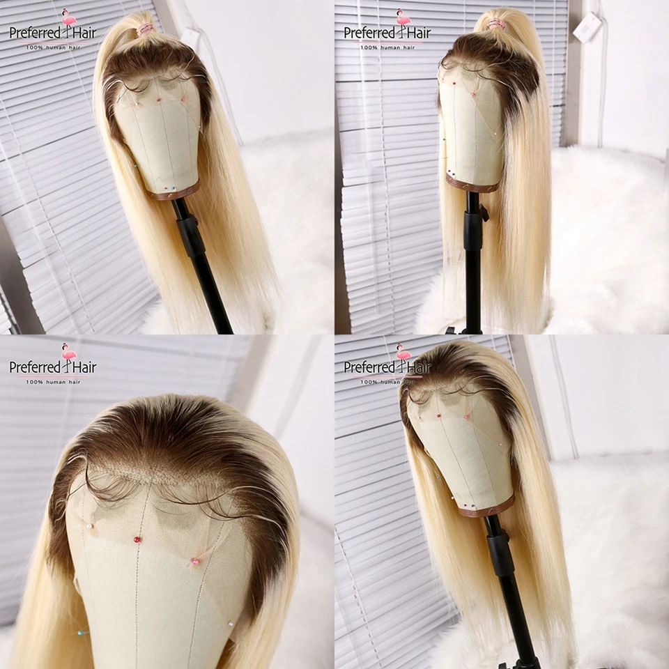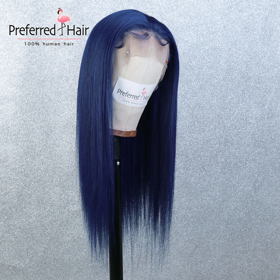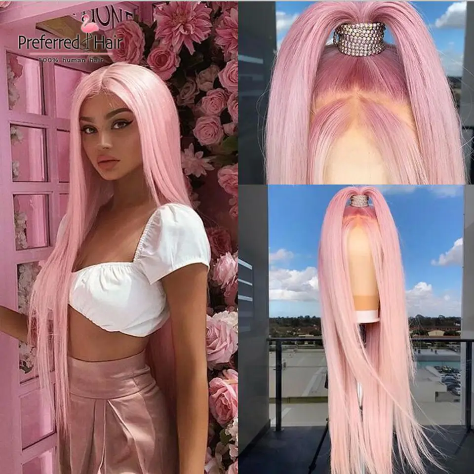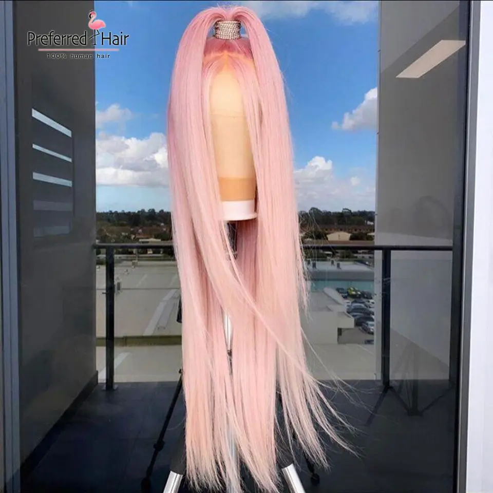 Предпочтительный блонд Омбре парик на фронтальной сетке бразильский Remy темно-синийРозовый парик из натуральных волос, предварительно выщипанные прозрачные парики на сетке для женщин