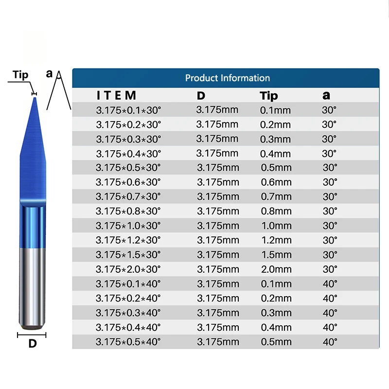 XCAN 10 шт. с голубым покрытием PCB 3D гравировальные биты 3040 градусов карбид V Форма фрезерный станок с ЧПУ Бит фреза для гравировки с ЧПУ