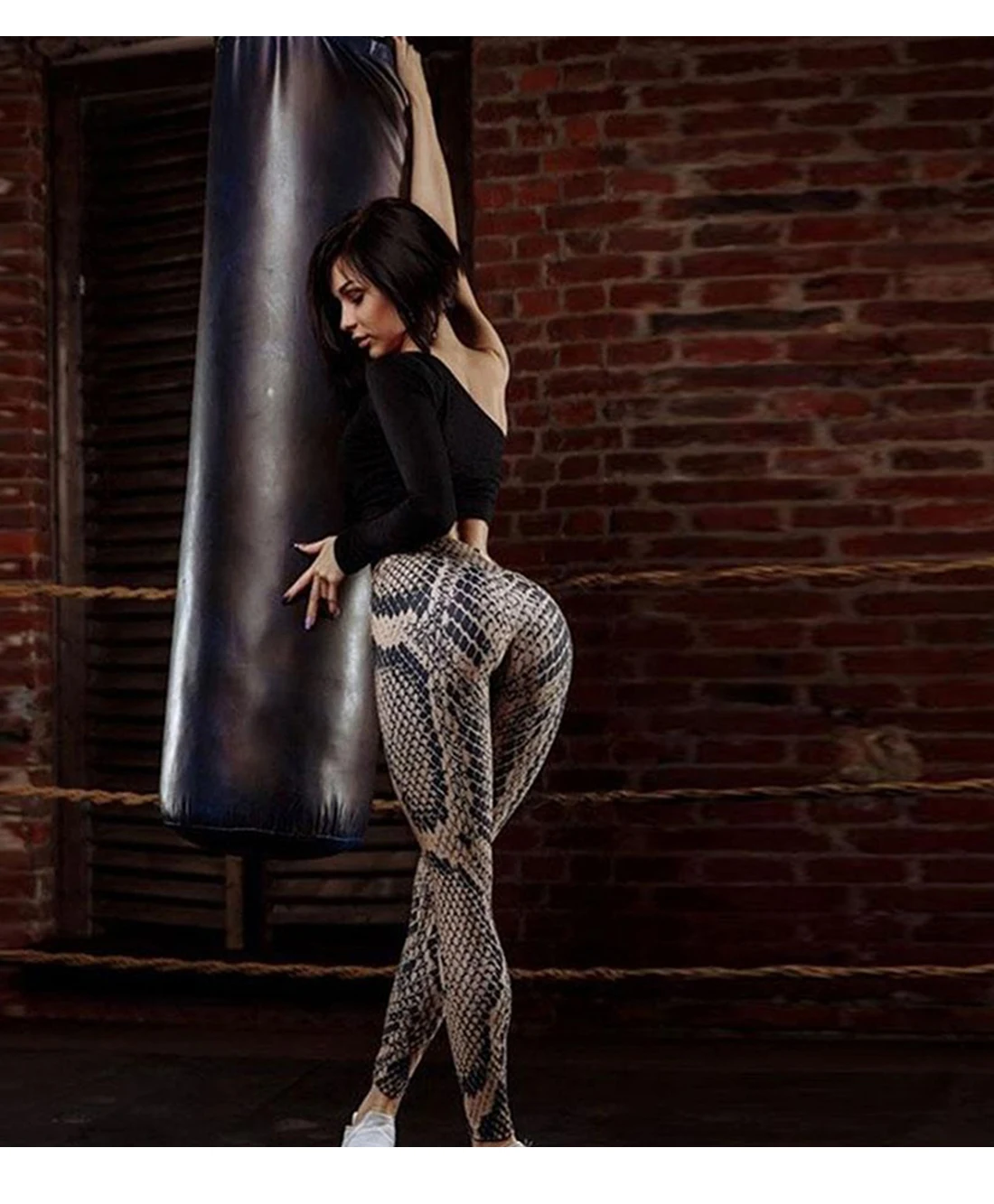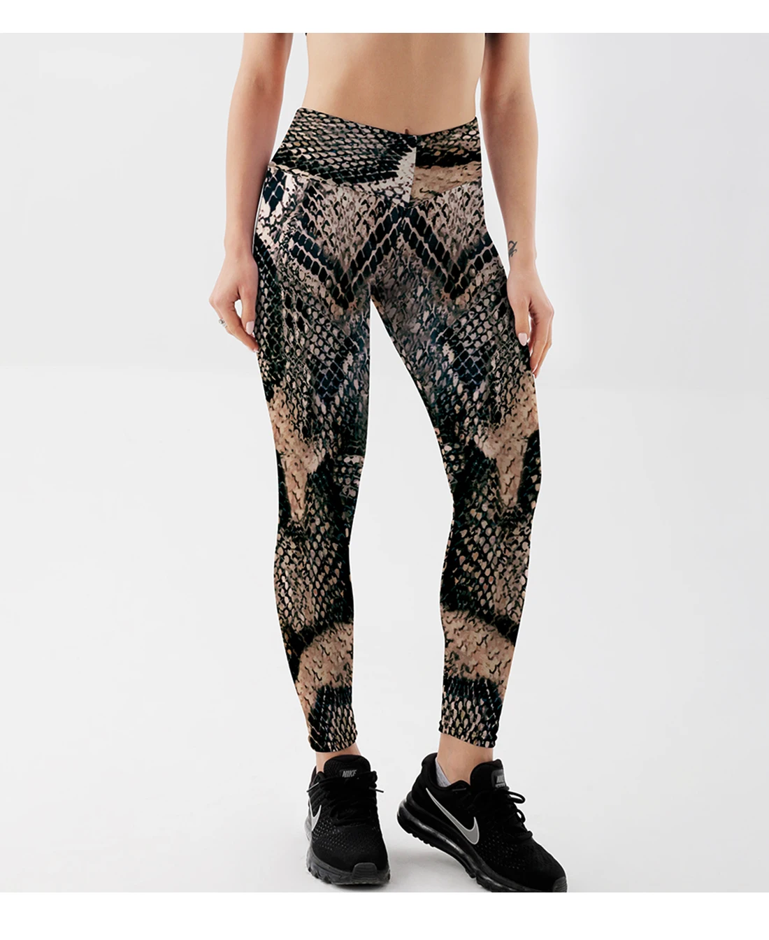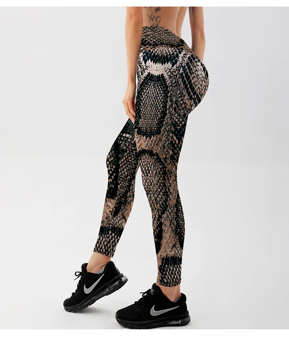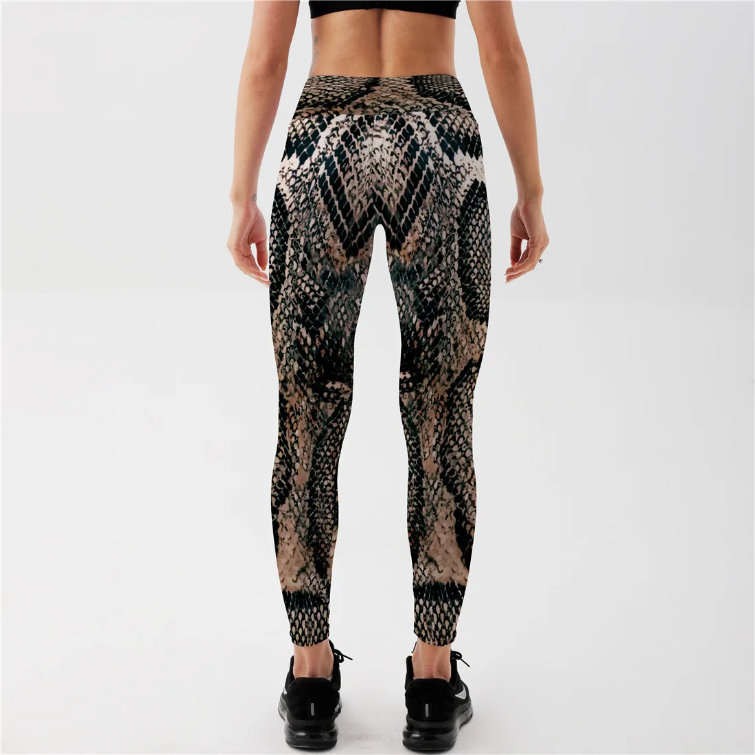 Женские эластичные леггинсы из полиэстера, с узором под змеиную кожу, для тренировок, с эффектом пуш-ап