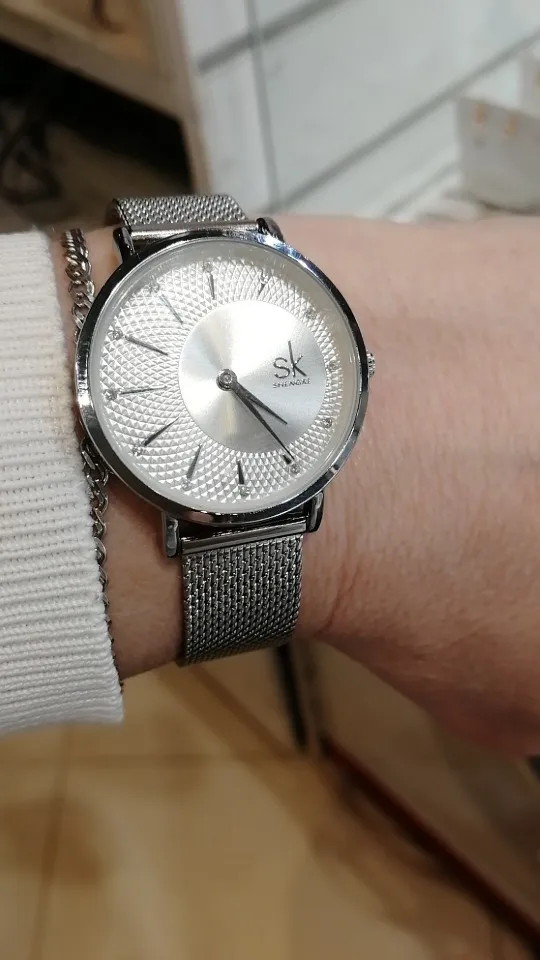 Кварцевые часы Shengke, женские сетчатые часы из нержавеющей стали,...