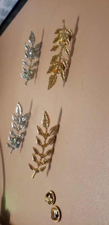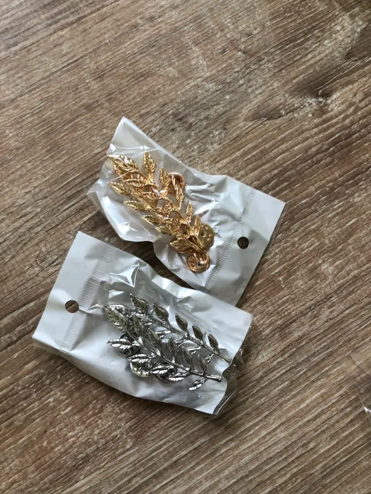Брала дочери, чтобы разнообразить школьные блузки. Качество очень хорошее.Цвет металла как светлое серебро. На одном листике 2 штырька как на гвоздиках. Держатся крепко. Можно носить как просто брошку тоже отлично смотритьс.