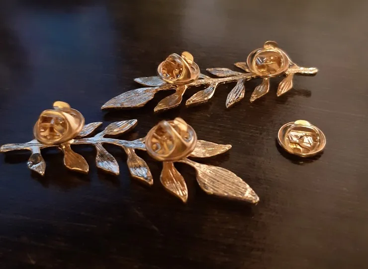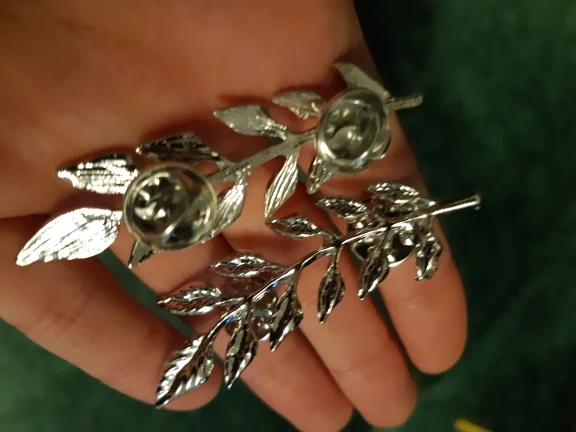 Очень красивые броши. Рисунок чёткий. Но легко гнутся и оставляют после себя заметные отверстия в одежде, особенно на воротнике рубашки. Своих денег стоит