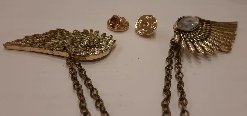 Я рад, что значки имеют две точки. С этим не спадает. Отлично держать. Крылья имеют один зажим и опускаются вниз.
