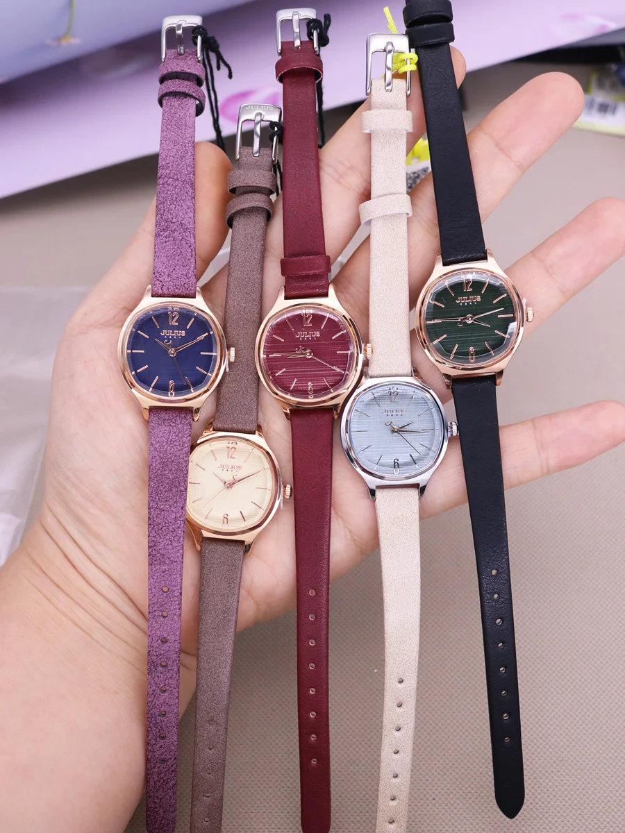 Маленькие женские часы Miyota, кварцевые часы, простые модные часы из натуральной кожи, браслет, ретро подарок на день рождения для девушек, коробка Julius