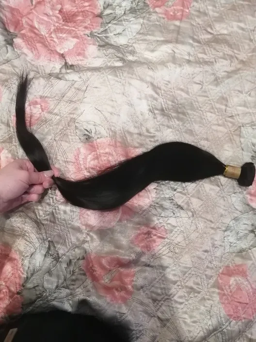 Заказала у этого продавца чёрные прямые и фиолетовые волнистые для изготовления тресса на заколках. Взяла 5 пучков, думала будут жидкие. В итоге уместила только 3 и получилась реальная копна. В идеале подойдут 2 пучка. Волосы супер, мягкие, густые, длинна соответствует. Доставка мего супер 12 дней.