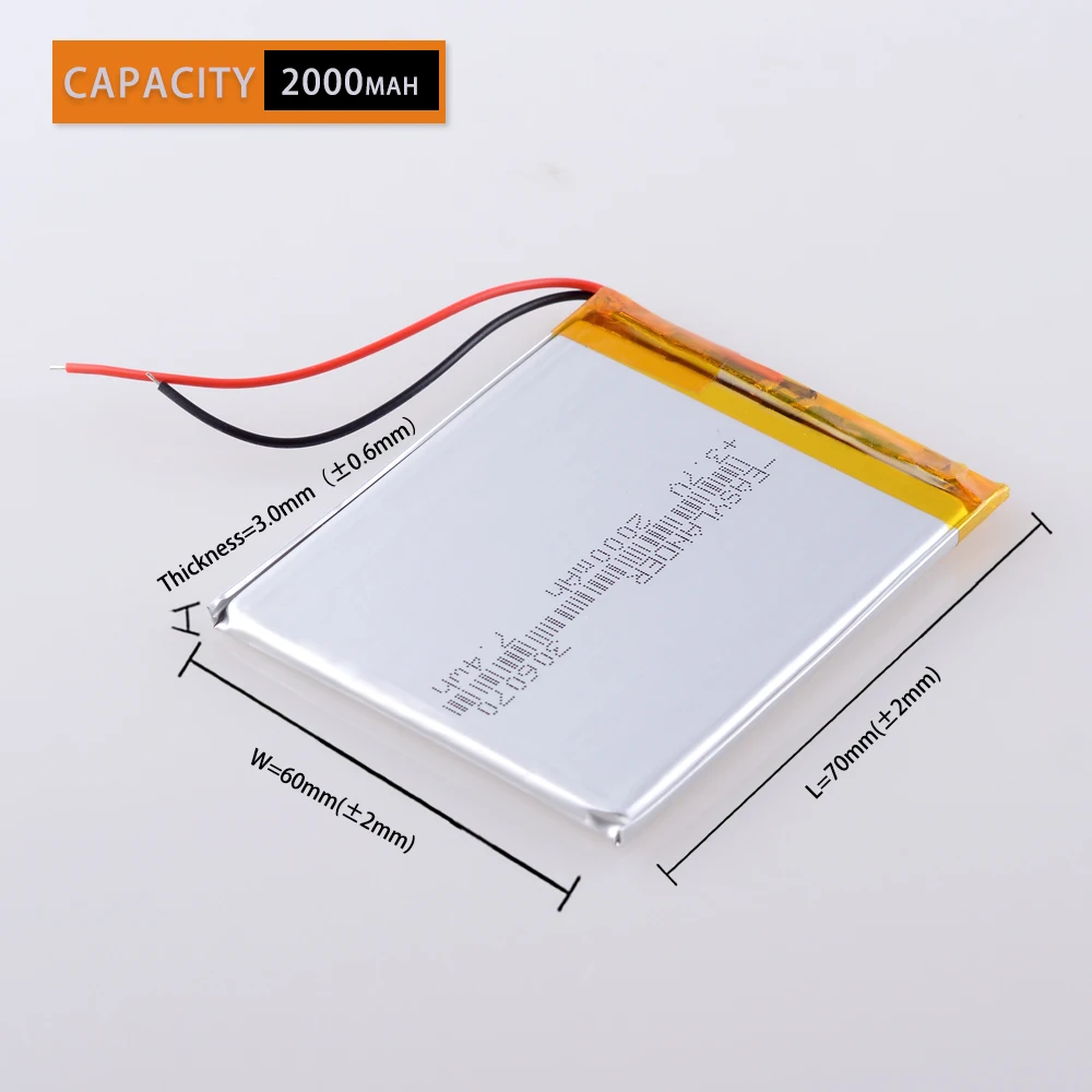 Перезаряжаемый литий-полимерный аккумулятор 306070 3,7 в 2000 мАч для PSP, PDA, GPS, DVR, электронной книги, планшетного ПК, внешний аккумулятор Wexler Book E6005 356070