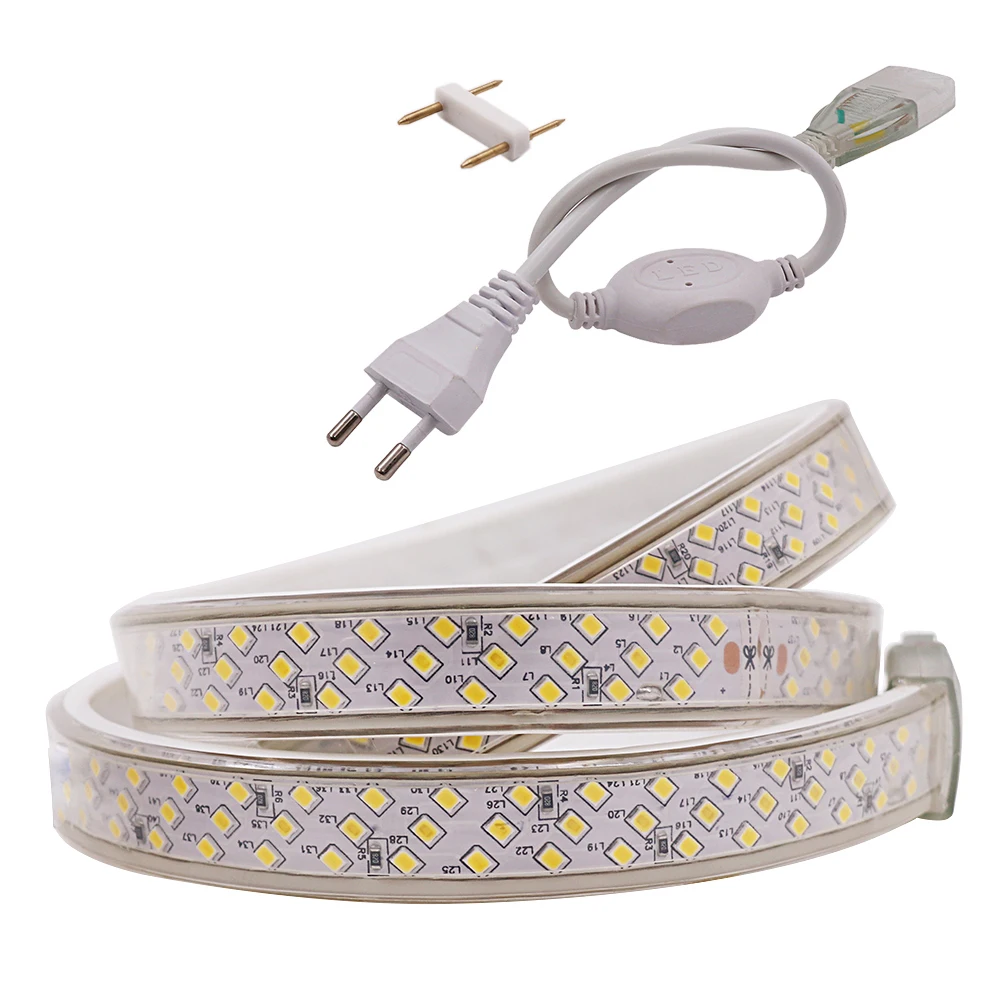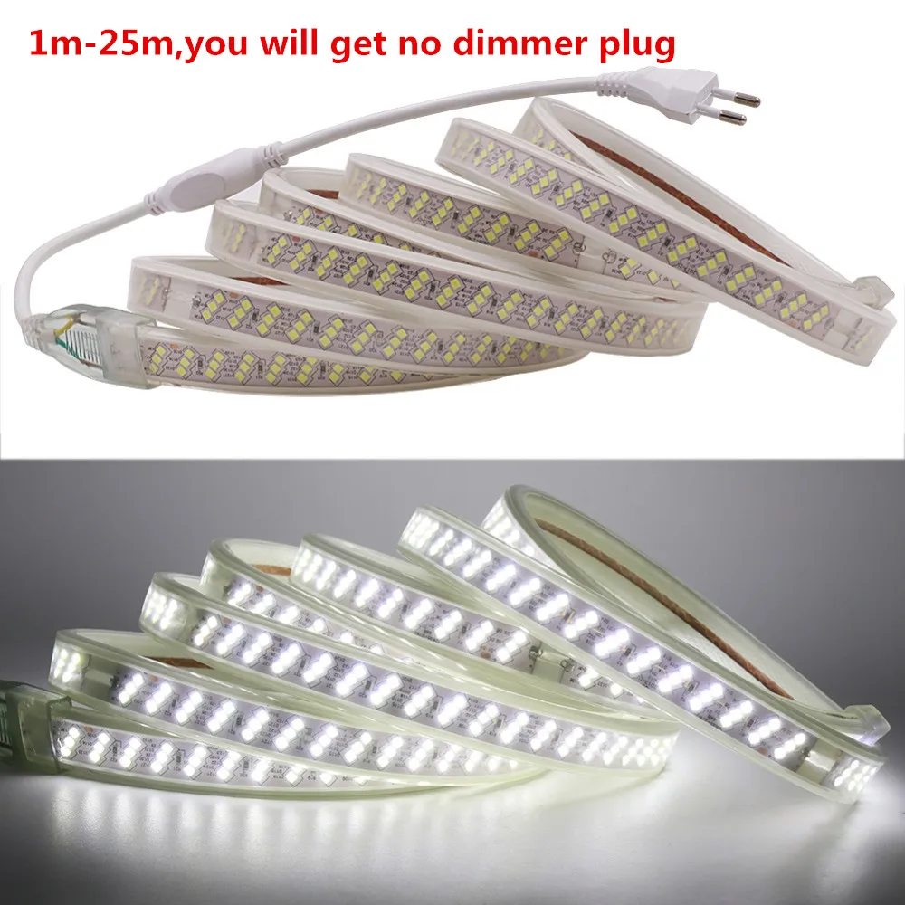 Светодиодная трехрядная лента 220 В 2835, 276 светодиодовм, водонепроницаемая гибкая лента, светодиодная лампа, украшение для кухни с вилкой европейского стандарта