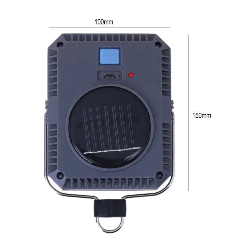 Особенности: 1. Два способа зарядки: солнечная зарядка + USB зарядка. 2. 3 режима: яркий белый светильник, слабый белый светильник, теплый желтый светильник. 3. Многофункциональность: с крюком и кронштейном, его можно использовать в качестве проектора или лампы для палатки для кемпинга на открытом воздухе. Его также можно использовать в качестве портативного прожектора. 4. Форма личности: В отличие от других ламп, эта лампа имеет отличительный крутой внешний вид. Спецификация: