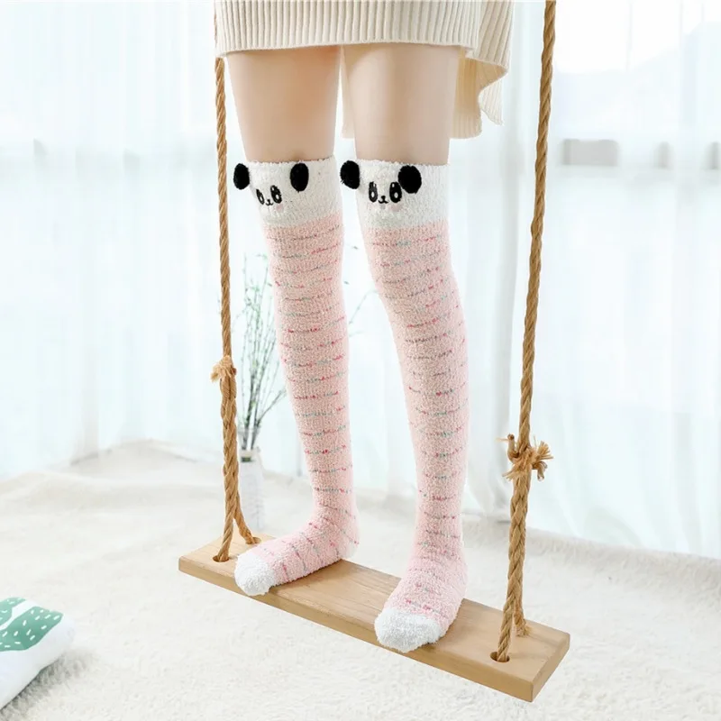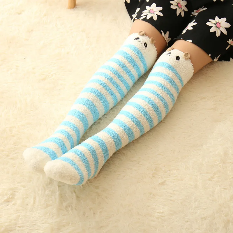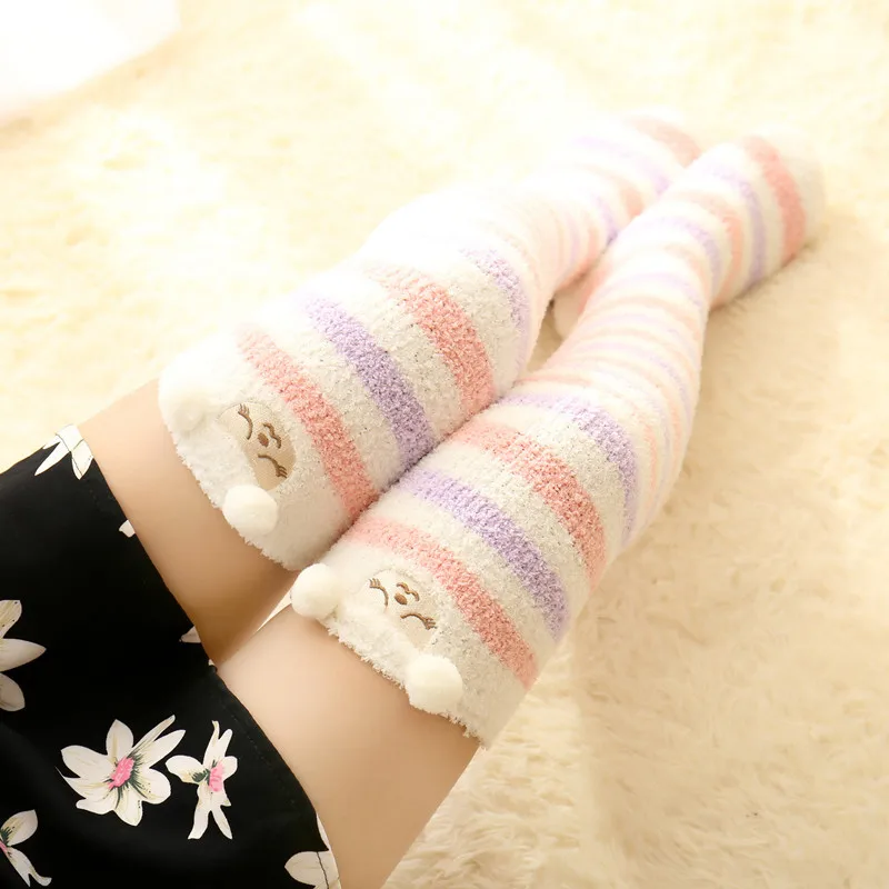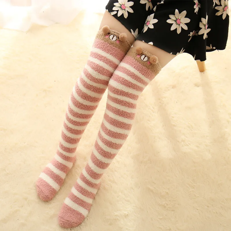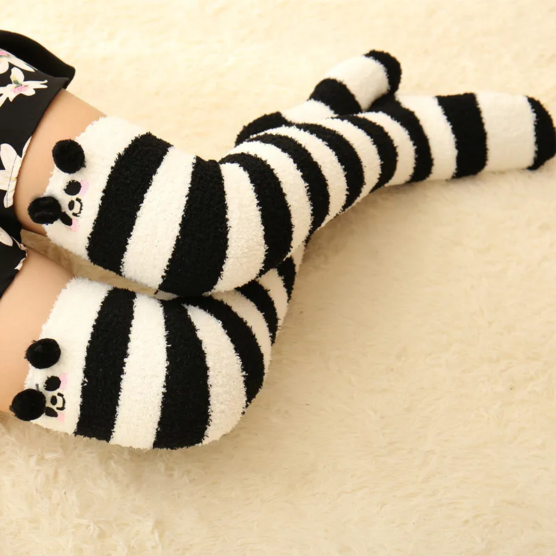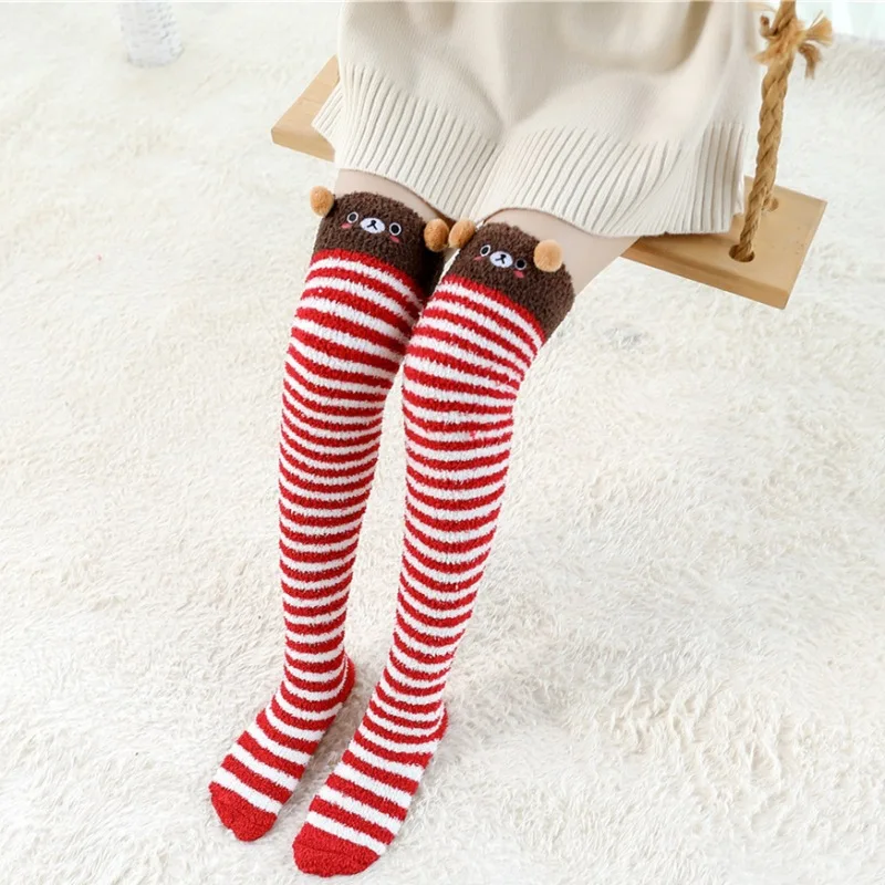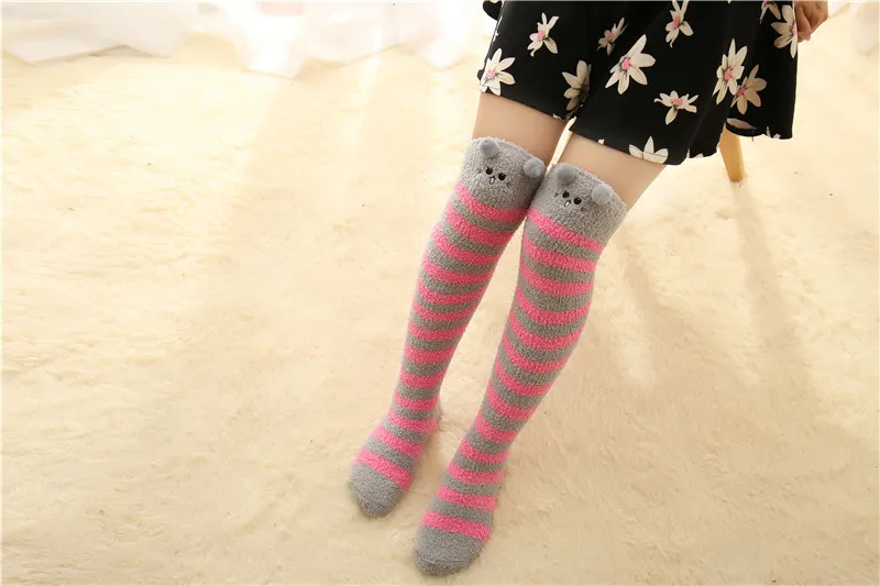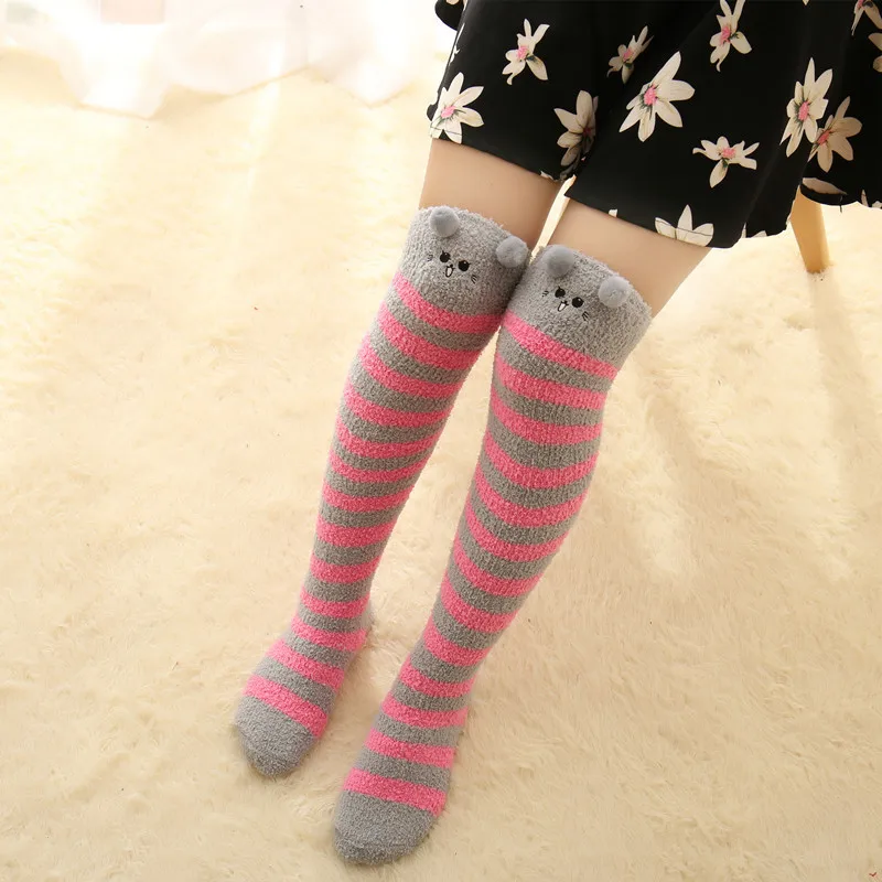 Японские моделирующие Гольфы Mori Girl с животными, милые полосатые уютные длинные носки до бедра, компрессионные зимние теплые носки