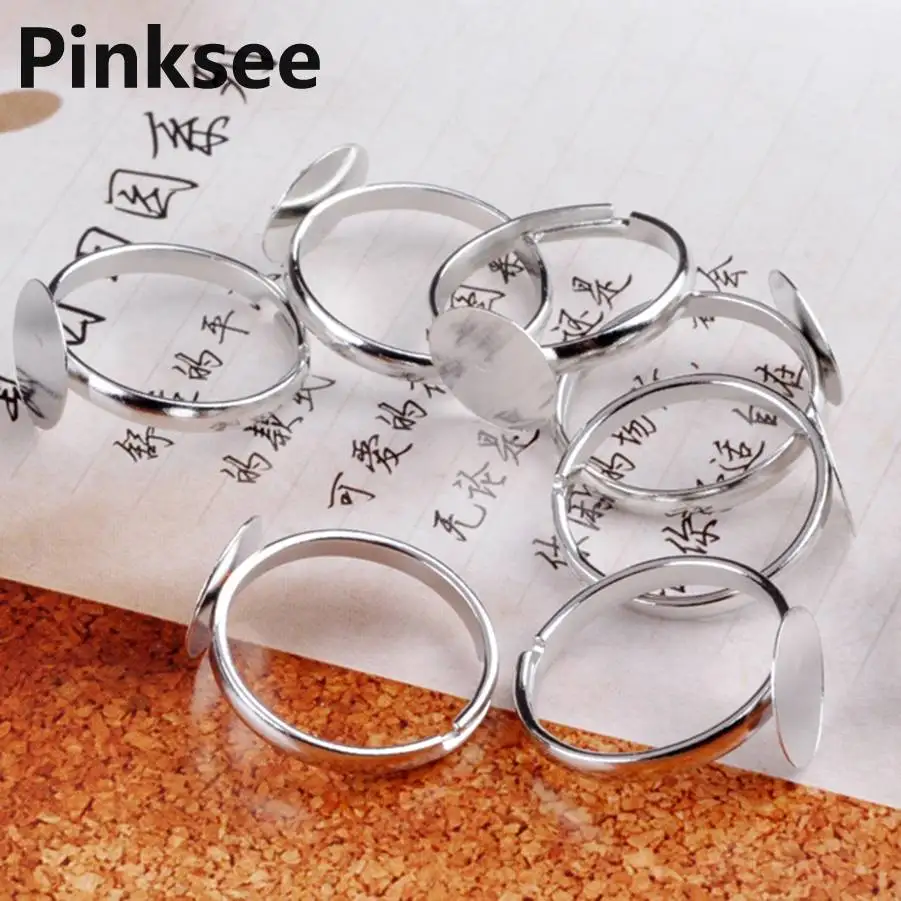 Регулируемые посеребренные плоские основания для колец DIY пустые фурнитуры 2,5*10 мм кольца ювелирные аксессуары 60 шт. оптом