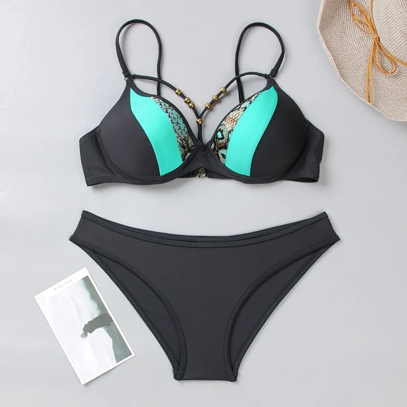 Сексуальное леопардовое бикини Miyouj, купальник пуш-ап с глубоким V-образным вырезом, женский купальный костюм с вырезами, женское бикини со змеиным принтом, халтер