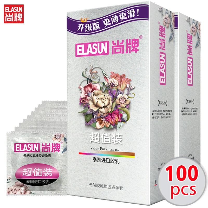 100 шт.упак. ELASUN ультратонкие презервативы для пениса для мужчинее контрацептивное устройство большая Смазка масло презервативы из натурального латекса