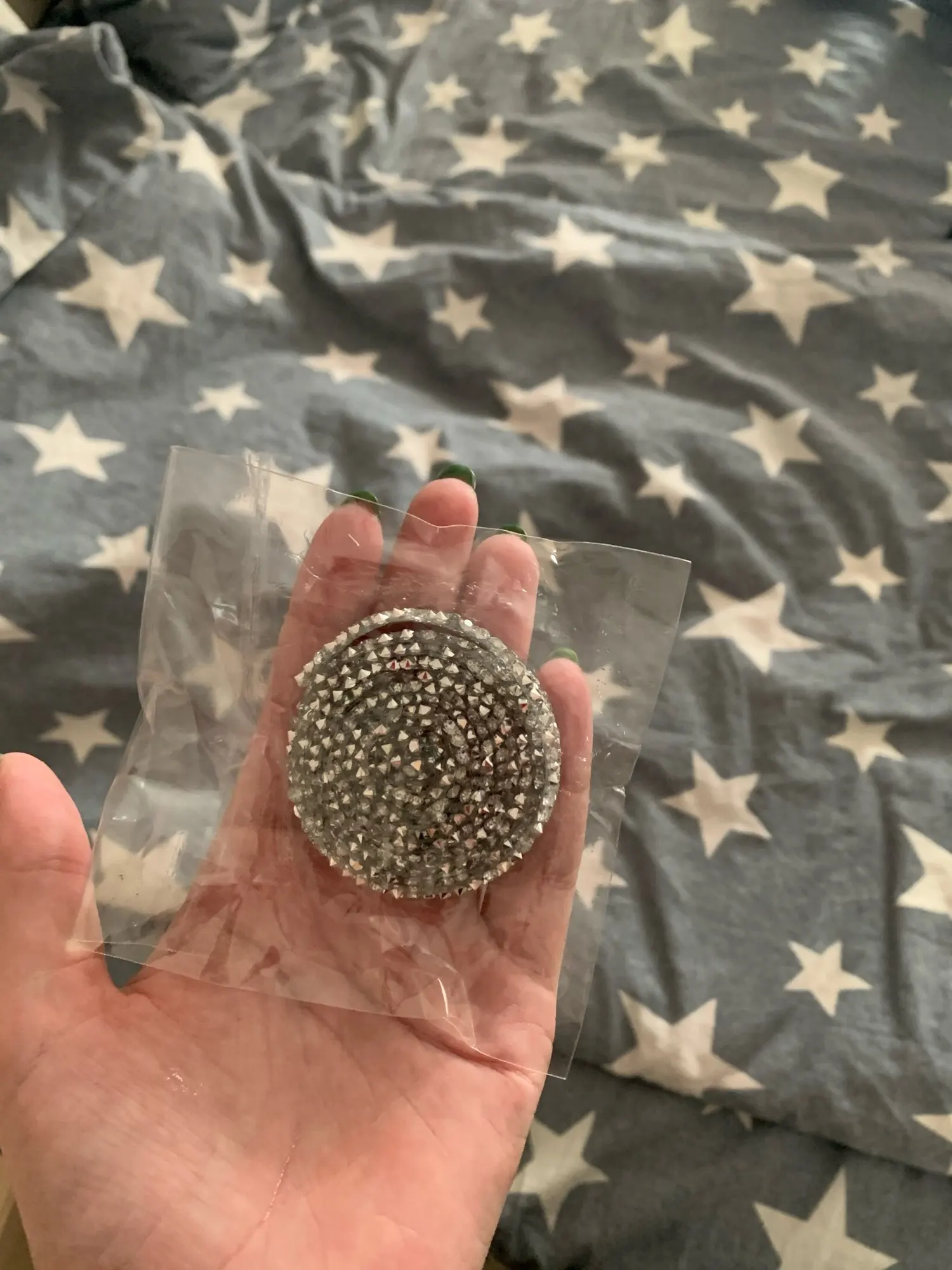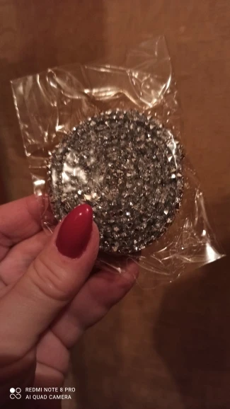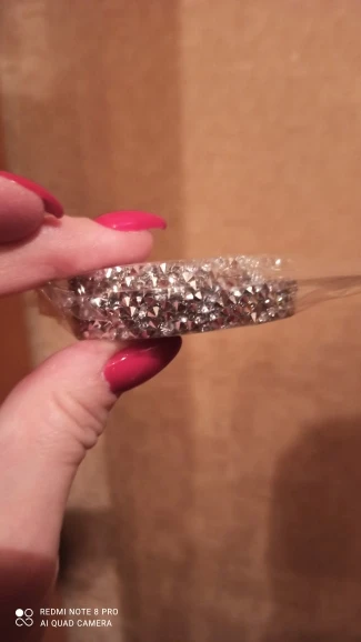33 дні доставки, укрпоштою. Всe подобається, сeрeдина нe липнe, на прозорому силіконі наклeєні срібні стрази, отак би описала що маю