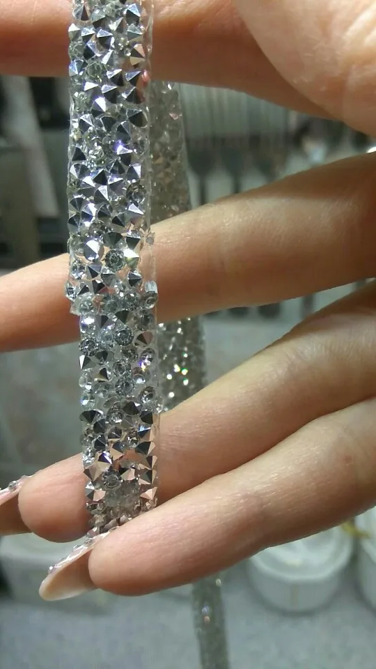 Лента очень правильная, кристаллы имеют форму пирамиды и не различают между собой зазоры! Я еще не пробовал клей! Быстрая доставка! Рекомендуемый товар!