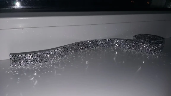 стразы рассыпанные на липкую резиновую ленту. Думаю не ко всем поверхностям будет хорошо клеиться.
