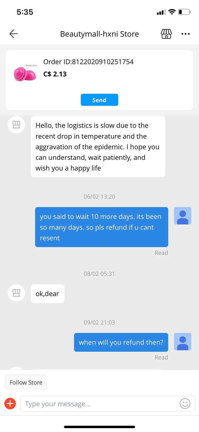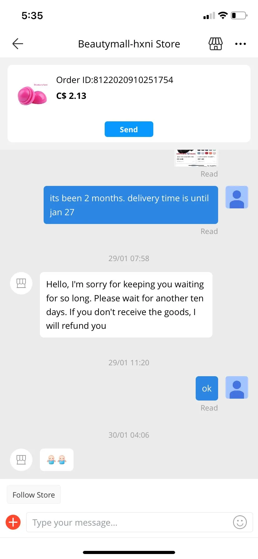 Товар не пришёл за 75 дней, деньги вернули