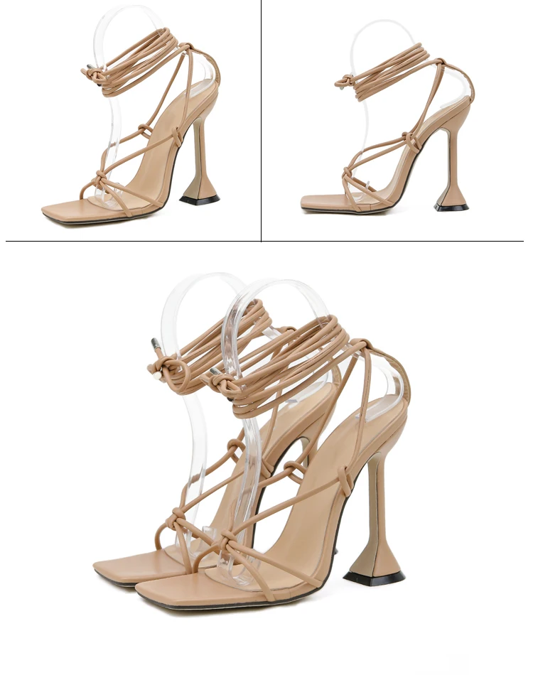 Aneikeh Мода 2023NEW летние женские сандалии ПУ шнуровка тонкий высокий закрытый каблук низкий Змеиный танцевальный сплошной туфли-лодочки 35-40