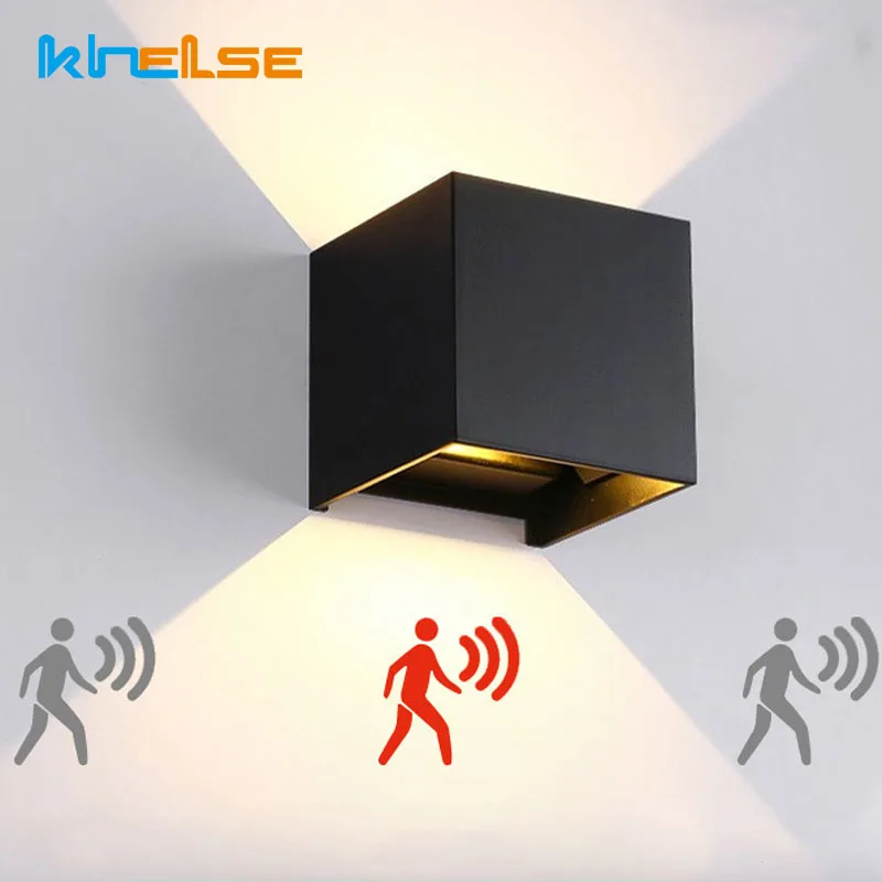 Светодиодный настенный светильник, водонепроницаемый, IP66, светильник для крыльца, современный светодиодный настенный светильник, датчик движения, садовый уличный светильник, AC90 ~ 260V