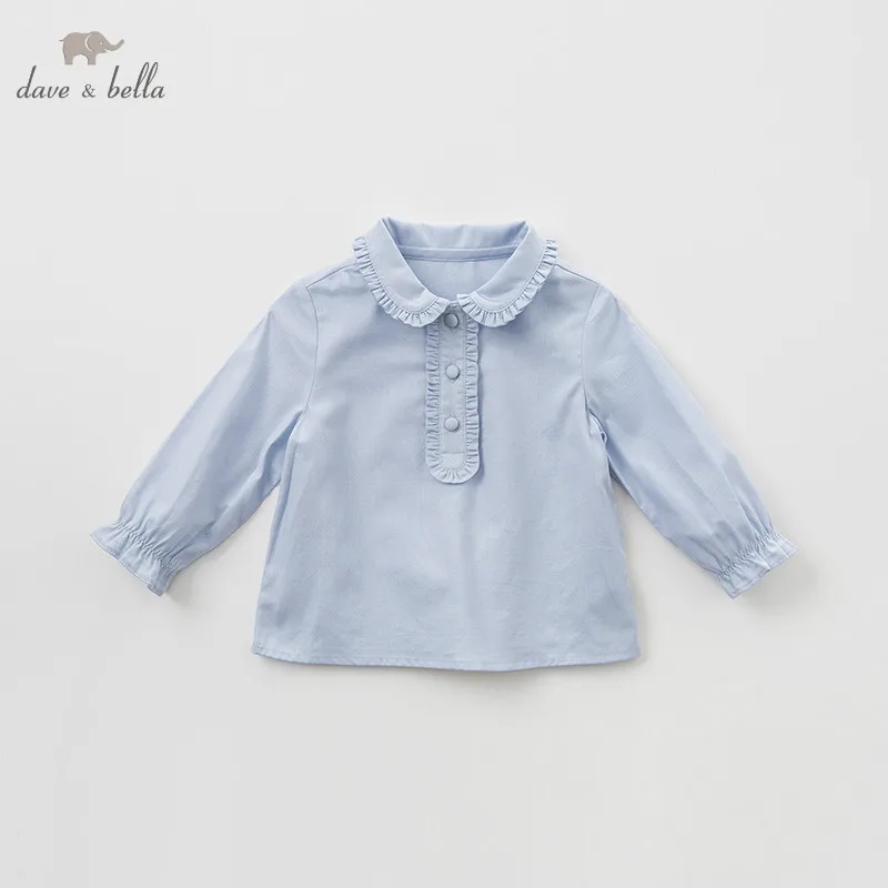 DB9952-1 нижнее белье в стиле бренда dave bella; Одежда для маленьких девочек; Модная детская футболка Топ для детей с года до трех лет для детей высокого качества, футболки для девочек однотонная одежда для детей