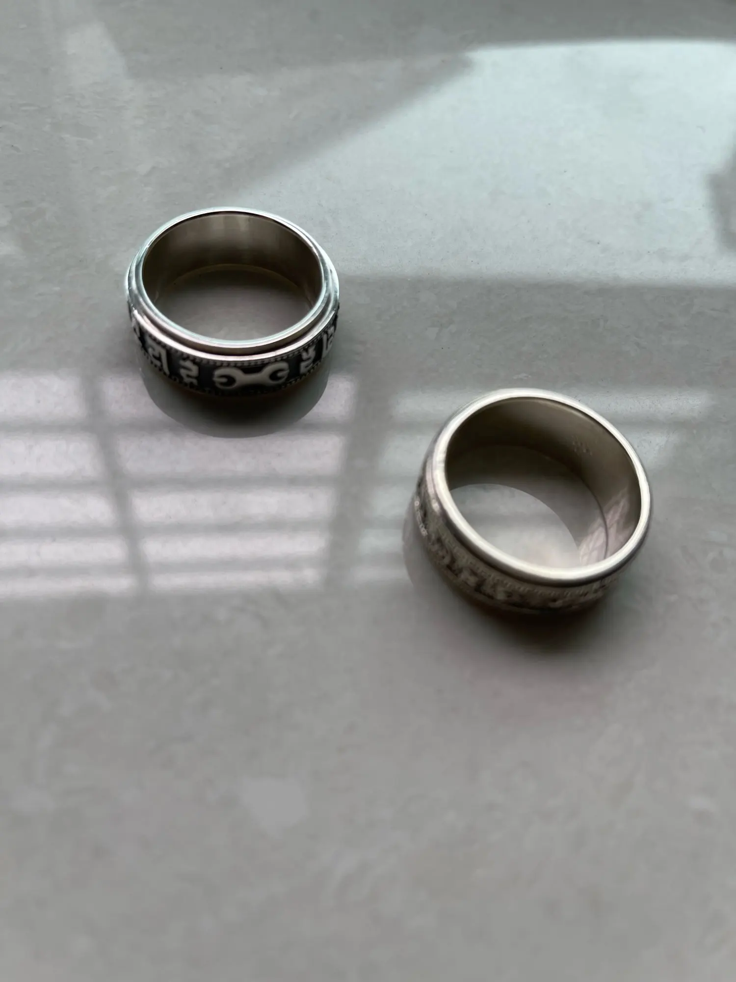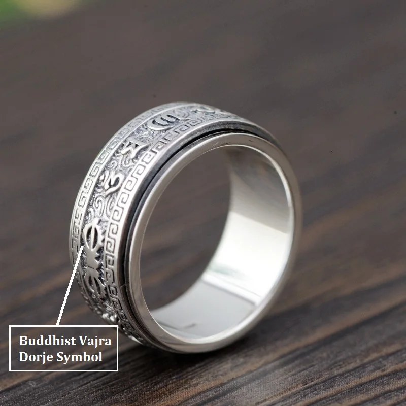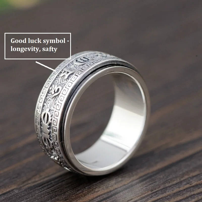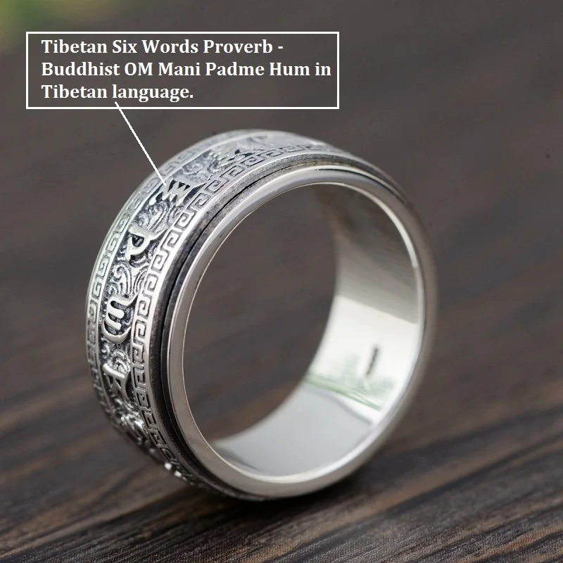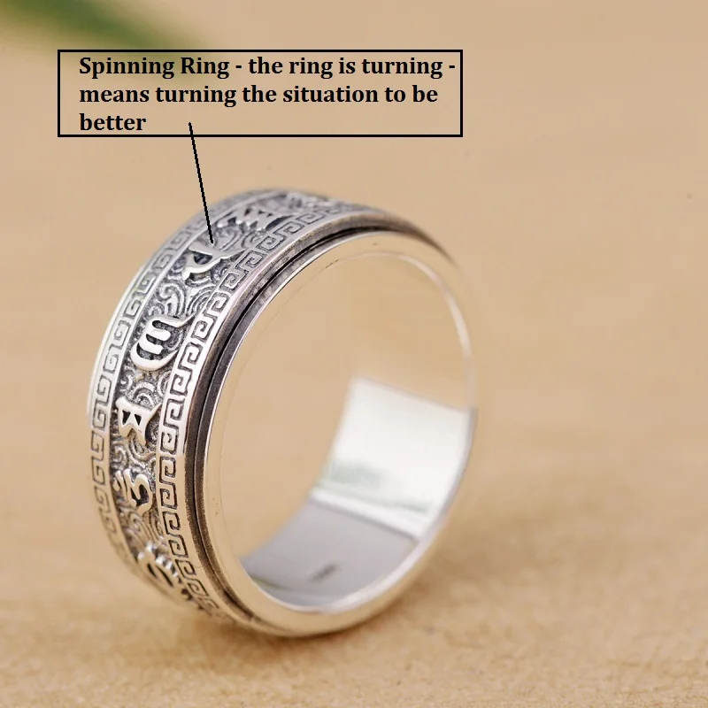 100% Серебро 925, тибетское кольцо с шестью словами, вращающееся кольцо, буддистское кольцо Ом Мани, поворотное кольцо из чистого серебра, кольцо на удачу
