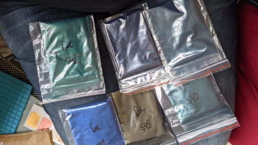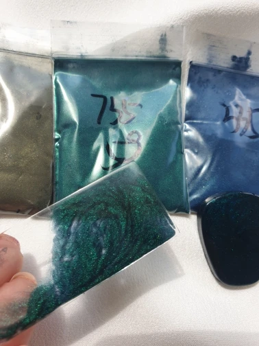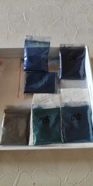 пигменты почти все красивые и богатые.Использовала для эпоксидной смолы. Фиолетовый , правда, даже при ярком свете не сильно понятен. кажется просто черным. 335 и 035 очень мало чем различаются. Пришло быстро ,недели за две в Украину