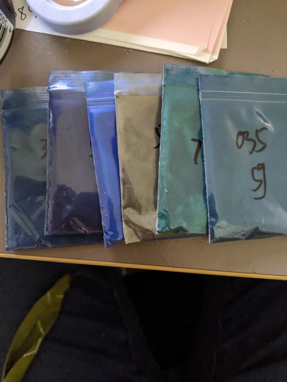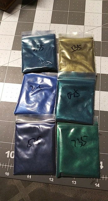Эти цвета являются основной причиной для заказа. Хотя есть некоторые различия IRL-они отлично смотрятся в смолы. Очень богатые пигменты. До сих пор я пользовался только одним, чтобы почистить слегка липкую смола. Покрытие было в порядке.