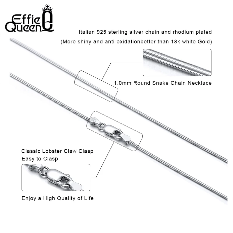 Effie Queen инкрустированные 100% 925 Серебряная цепочка 40 см-60 см Длина модное серебряное ожерелье цепь для мужчин и женщин ювелирные изделия оптом DSC09