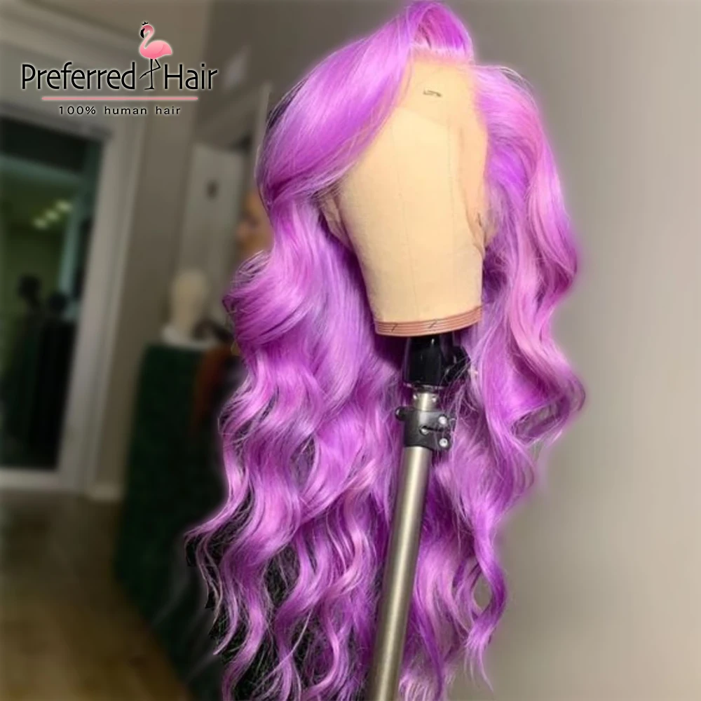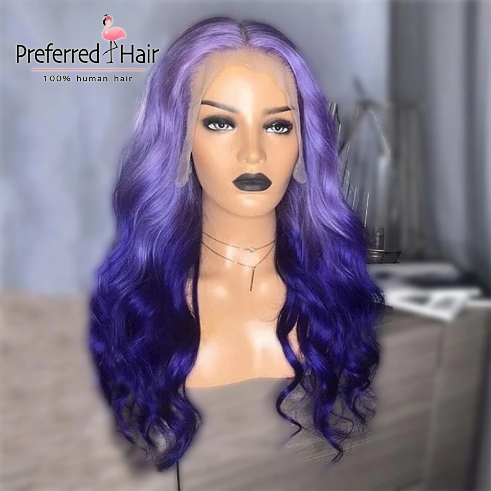 Предпочтительный прозрачный кружевной парик Remy бразильский парик фиолетовый кружевной передний парик человеческие волосы фронтальный парик для черных женщин
