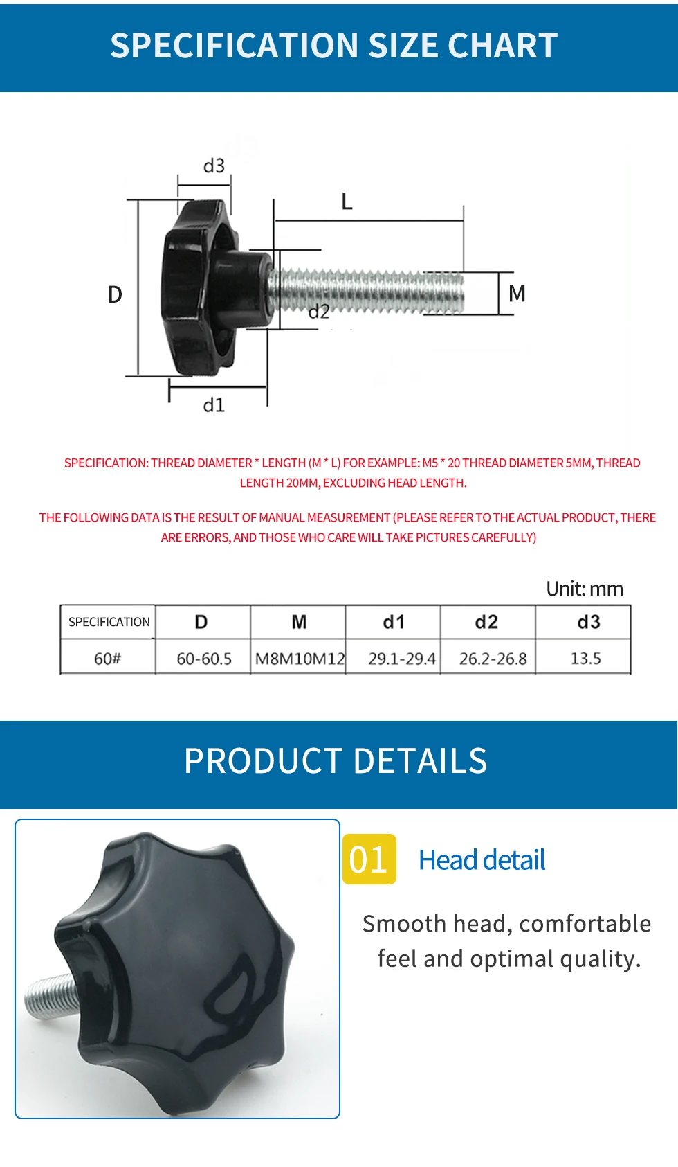 Luchang M8 M10 60 # резьба звездообразная Зажимная гайка ручка для промышленного оборудования бакелитовая пластиковая головка ручка винт