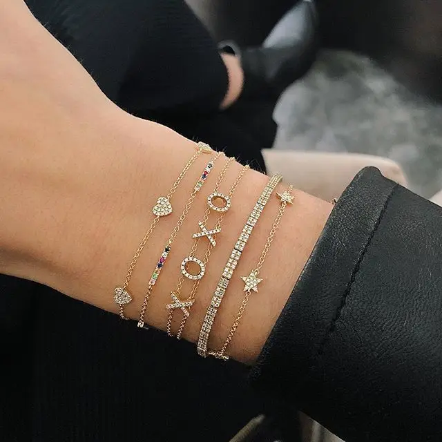 2021 ICED OUT BLING хип-хоп женские ювелирные изделия для девочек 5А фианит позолоченный полный Радужный Cz камень Звезда Форма браслет ювелирные изделия
