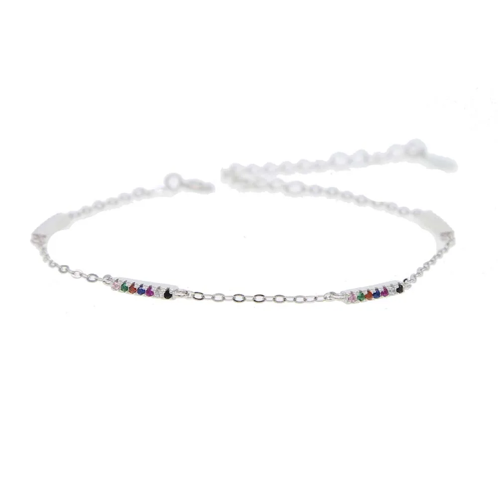 2021 Изящные крошечные модные ювелирные изделия, браслет из стерлингового серебра 925 пробы, красочные CZ радужные Круглые Мини Маленькие браслеты для девушек и женщин