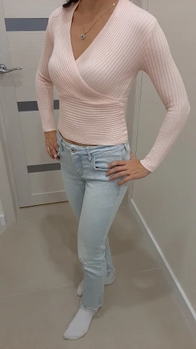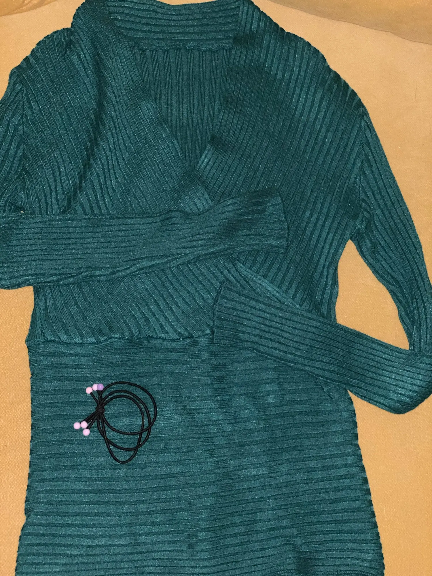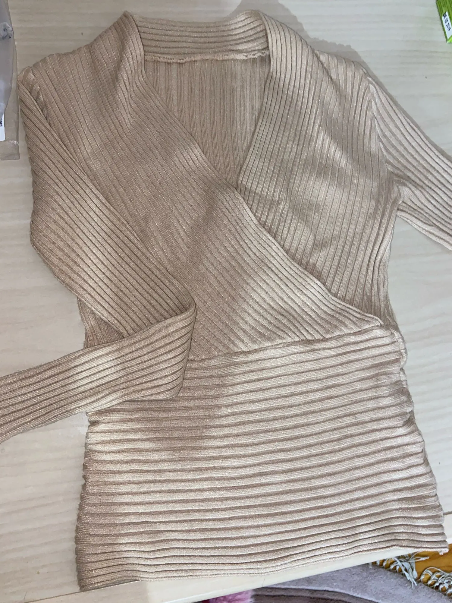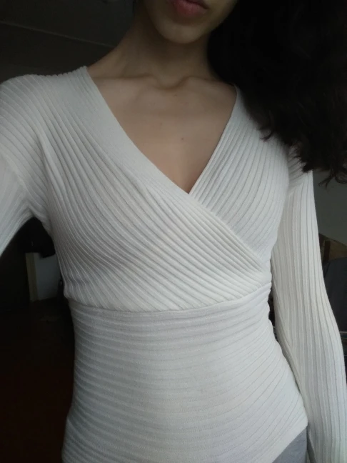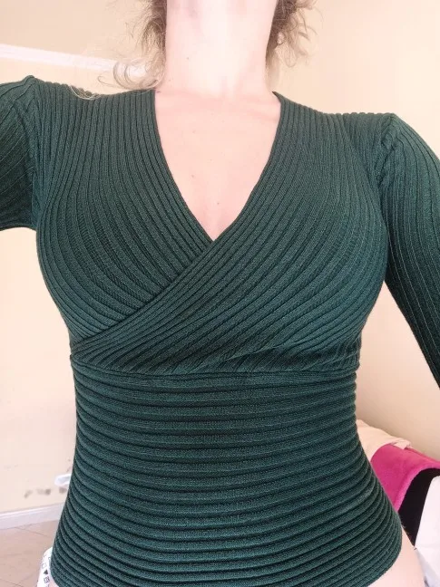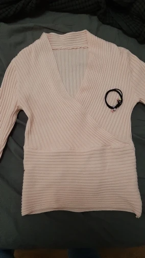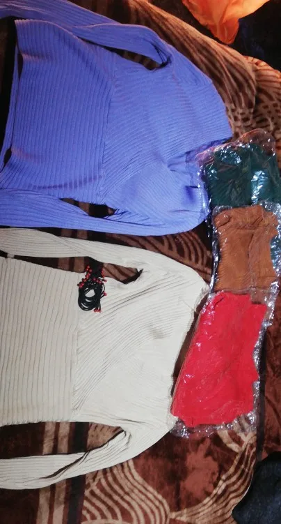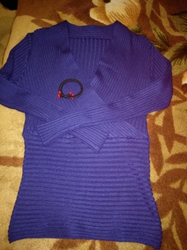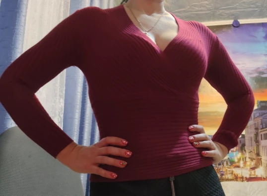 Тонкий вязаный свитер. Очень эластичный, подходит к телу. Он не открывается много, это для осени. Плохая упаковка, долгое время доставки. Я рекомендую вашу покупку на этот товар, а не продавцом, который из 5, который вы покупаете, отправил один из других цветов покупателю без запроса на мое одобрение