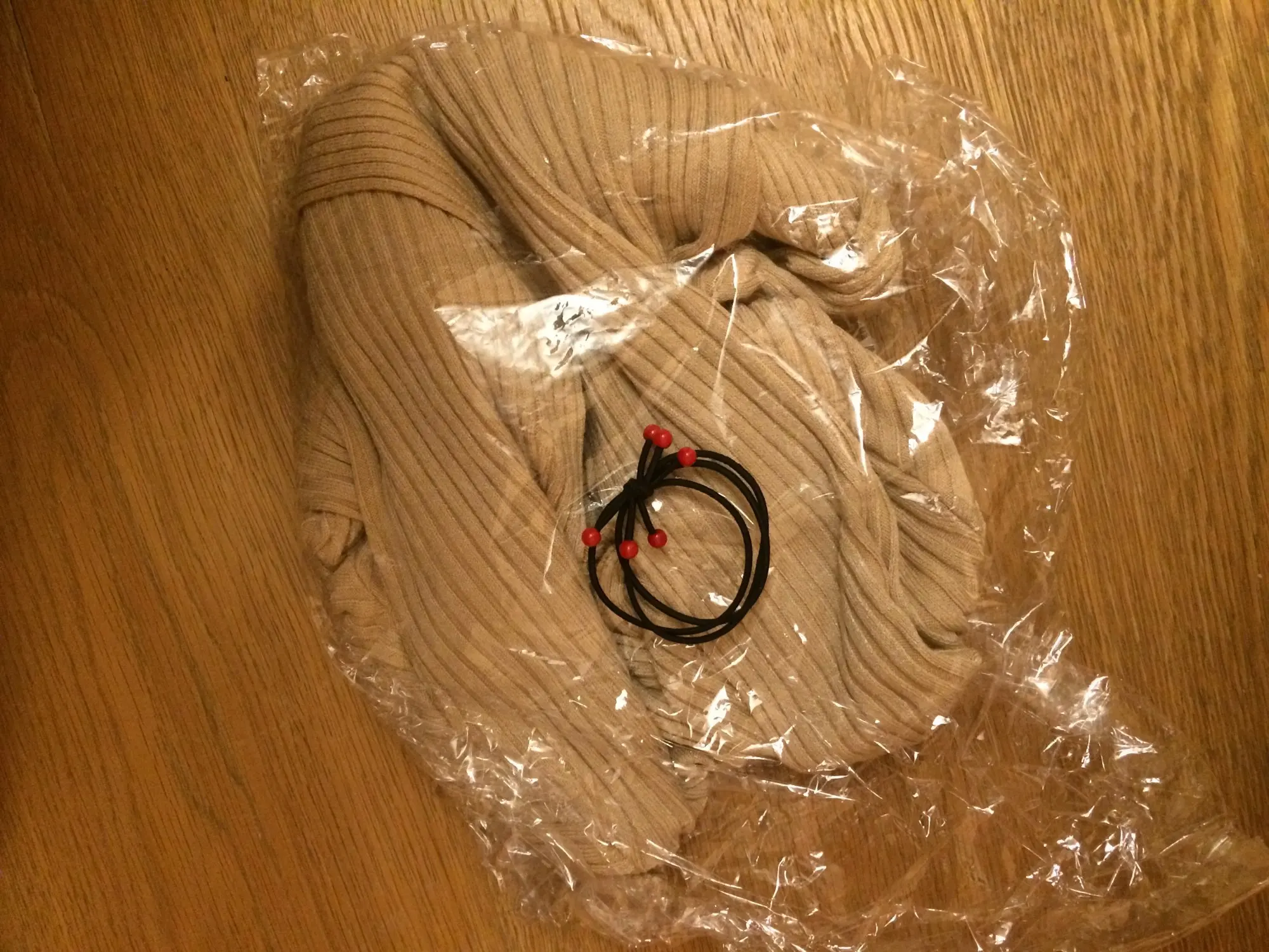 Прибыл в идеальном состоянии, тонкий свитер на осень и весну, он действительно удобный, очень хороший, продавец дал мне резину для волос на каждый свитер, я рекомендую!