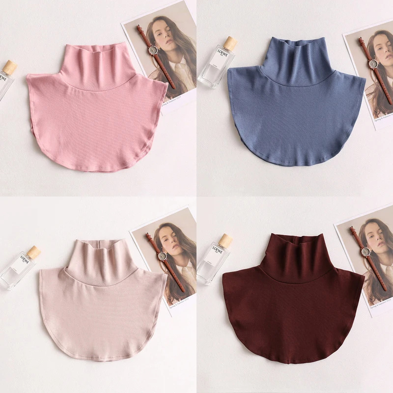 Хлопковая женская однотонная водолазка, съемный воротник, черный, белый