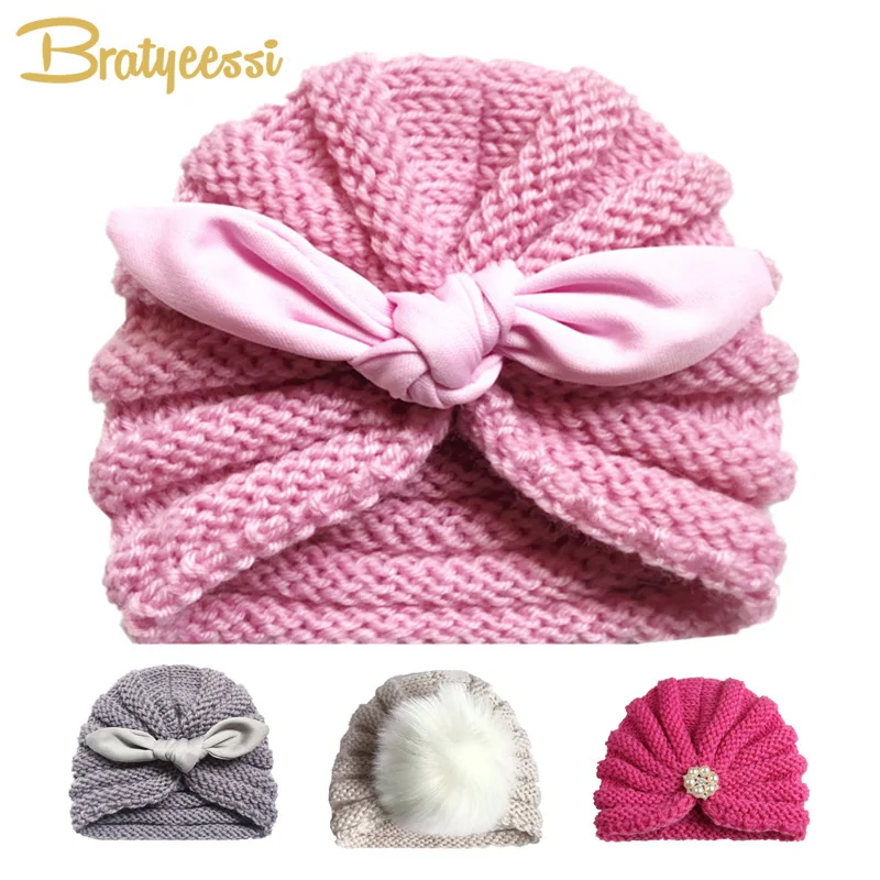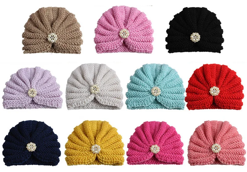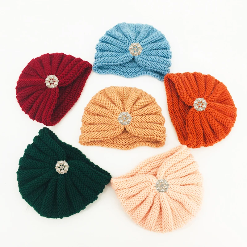 Шапка-тюрбан для мальчиков и девочек, вязаная, зимняя, ярких цветов, для новорожденных шапка