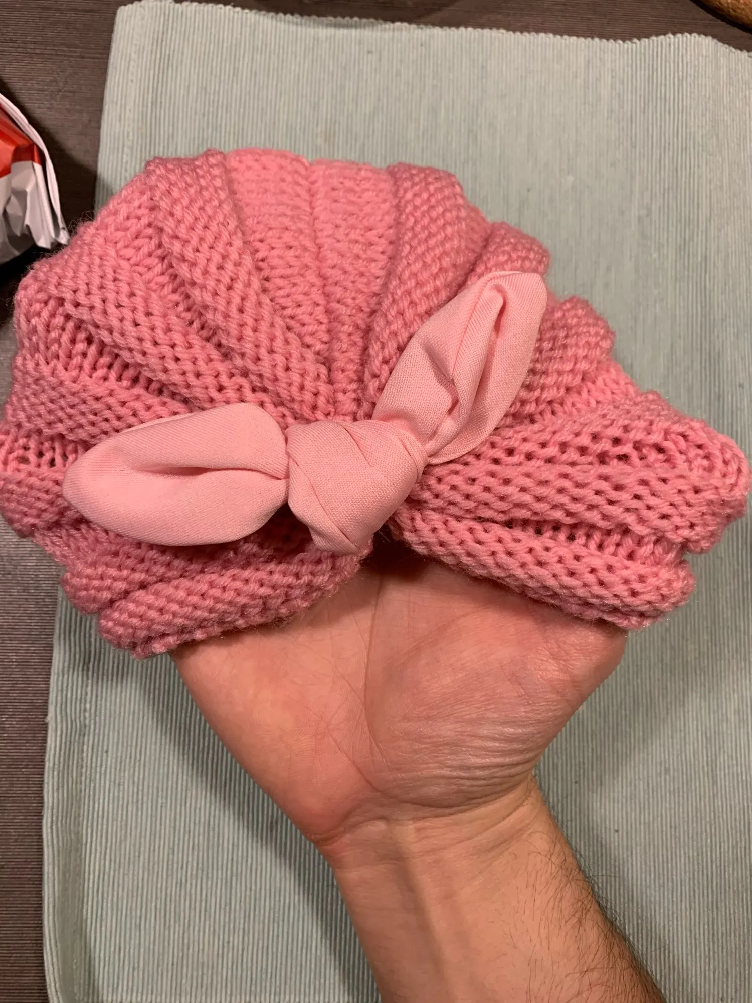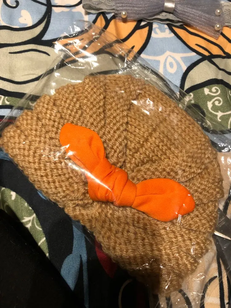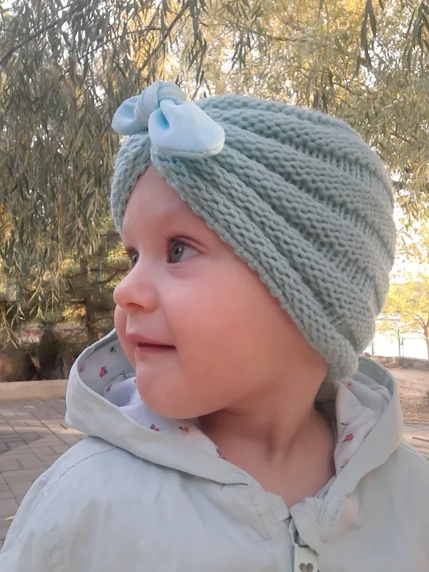 Очень удачная шапочка просто бомба цвет бантика яркий тёплая супер закалывала ещё повязку прислали в одном пакете все ! Спасибо али и продавцу