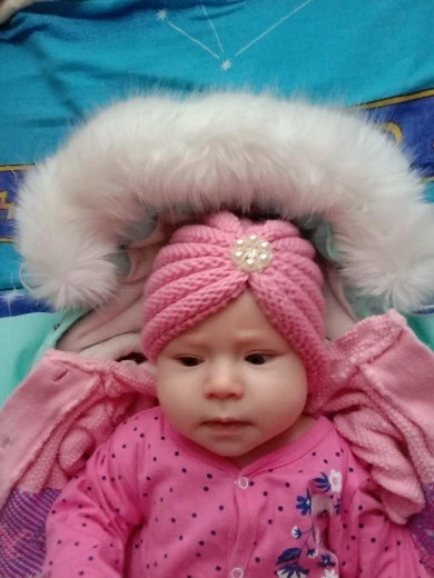 Шапочка мягкая и симпатичная. Очень красиво смотрится на девочке 4 месяца. Продавец умничка, отправил быстро и относительно быстро же она и пришла.