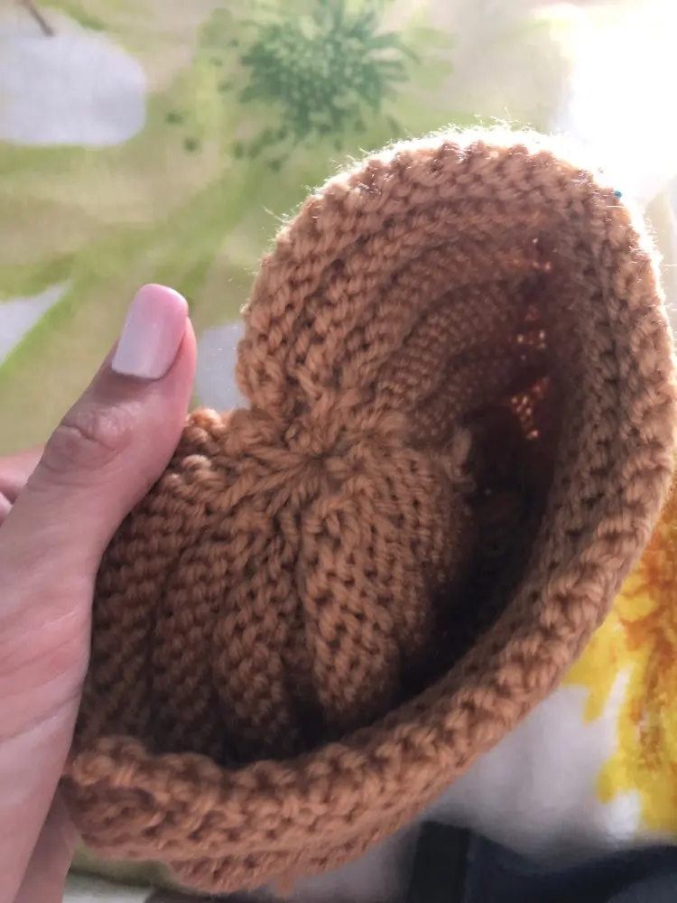 Шикарная вязаная шапочка на 6+ месяцев. Тянется. Красивая крупная вязка. НО! Одно большое НО. Шапочка пришла с двойным браком. В двух местах торчат нитки, из-за этого две дырочки.