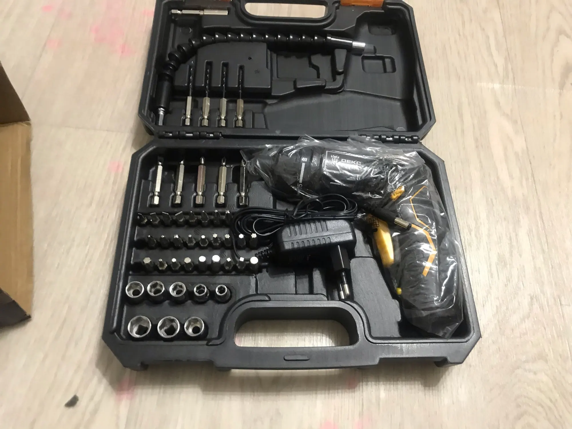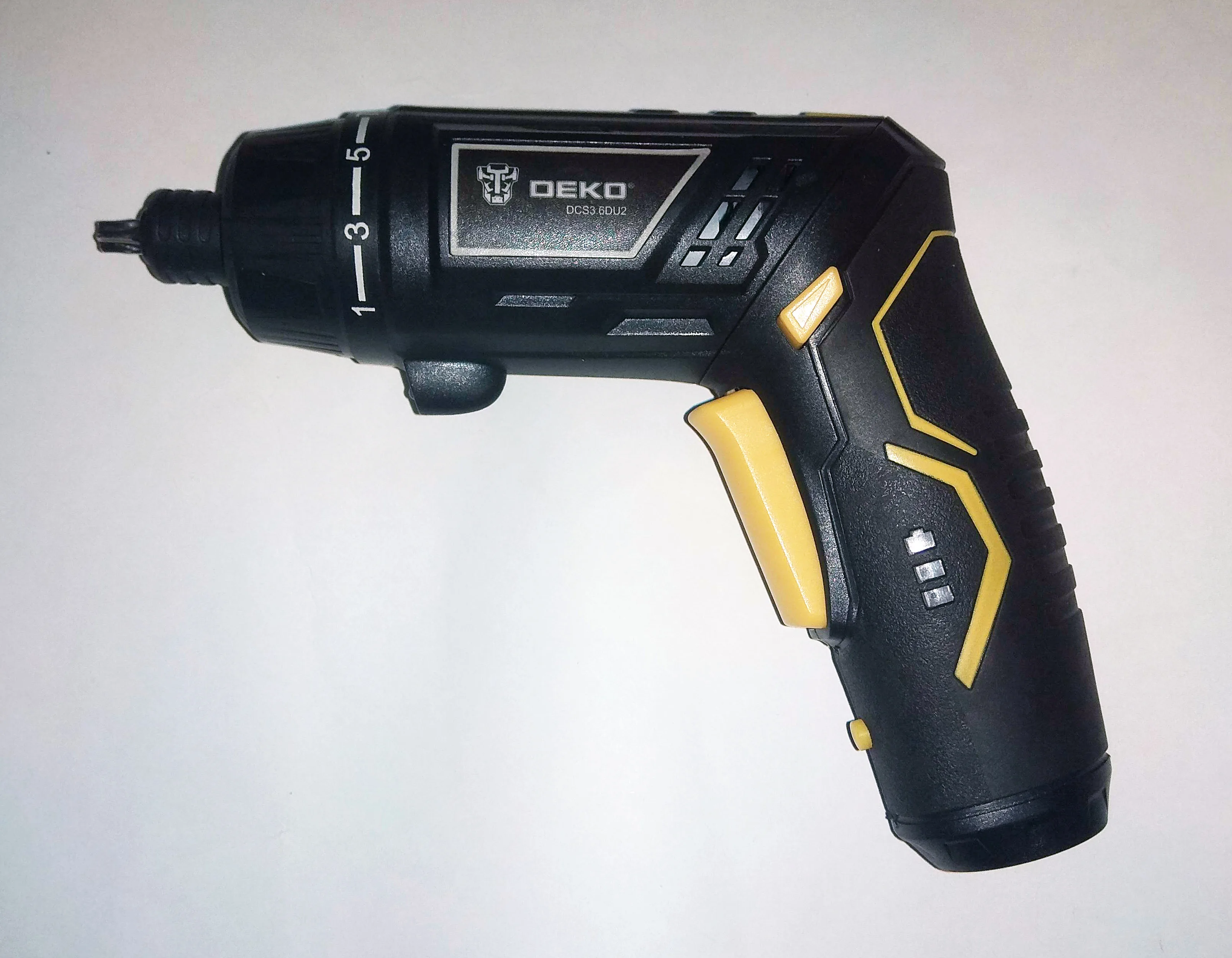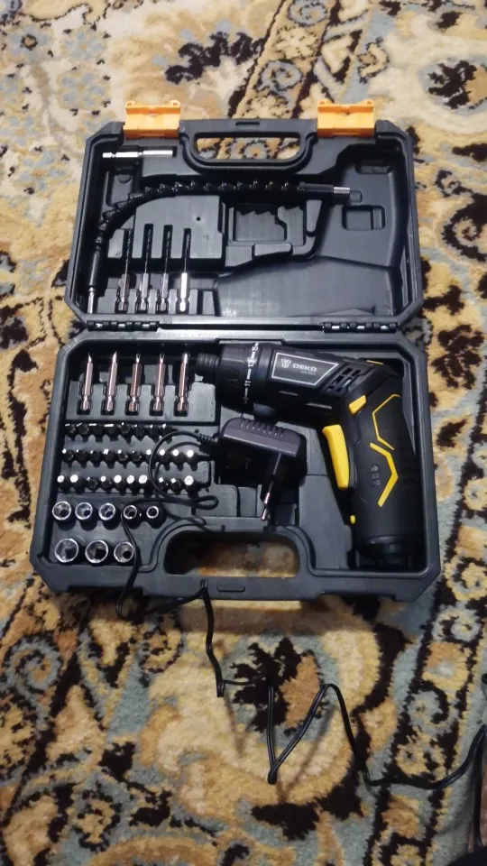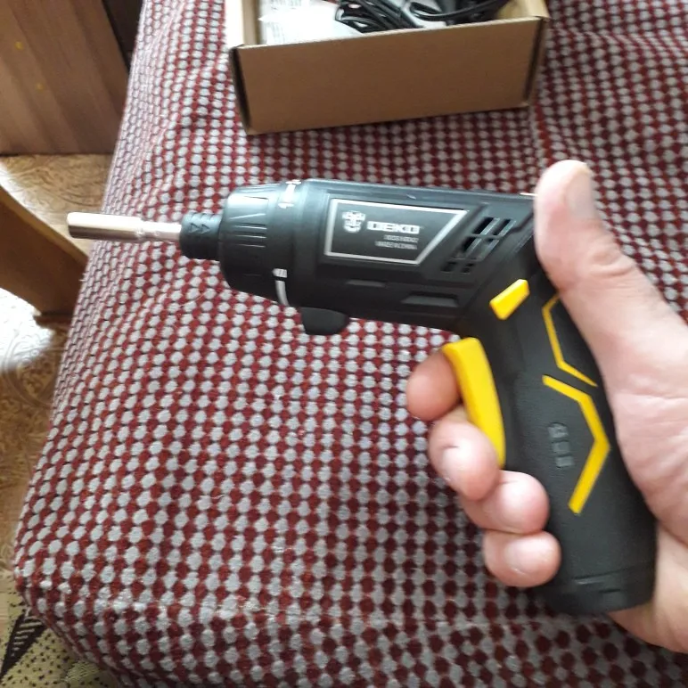 Очень быстрая доставка 5 дней со Одесского склада в Украине. "Укрпочта". В посылке фирменный бокс "DEKO" в фирменной упаковке. В пластиковом боксе: электро-отвертка "DEKO", зарядное устройство 5,5В, очень много насадок для винтов, шурупов, гаек на все случаи жизни (смотри фото №3), гнущийся удлинитель для насадок, 4 сверла, универсальный держатель и инструкция. Супер шикарная комплектация! Все сделано аккуратно и точно. Отвертка имеет два положения - изогнутый и прямой. В ручке отвертки вмонтирован яркий фонарик. Есть кручение в обратную сторону. Регулировка закрутки. Индикатор зарядки и разрядки. Реально все круто. Покупал на дачу, но решил оставлю дома, а на дачу закажу еще такой же. Надежный магазин. Удачная покупка