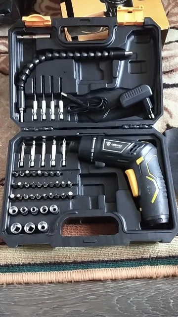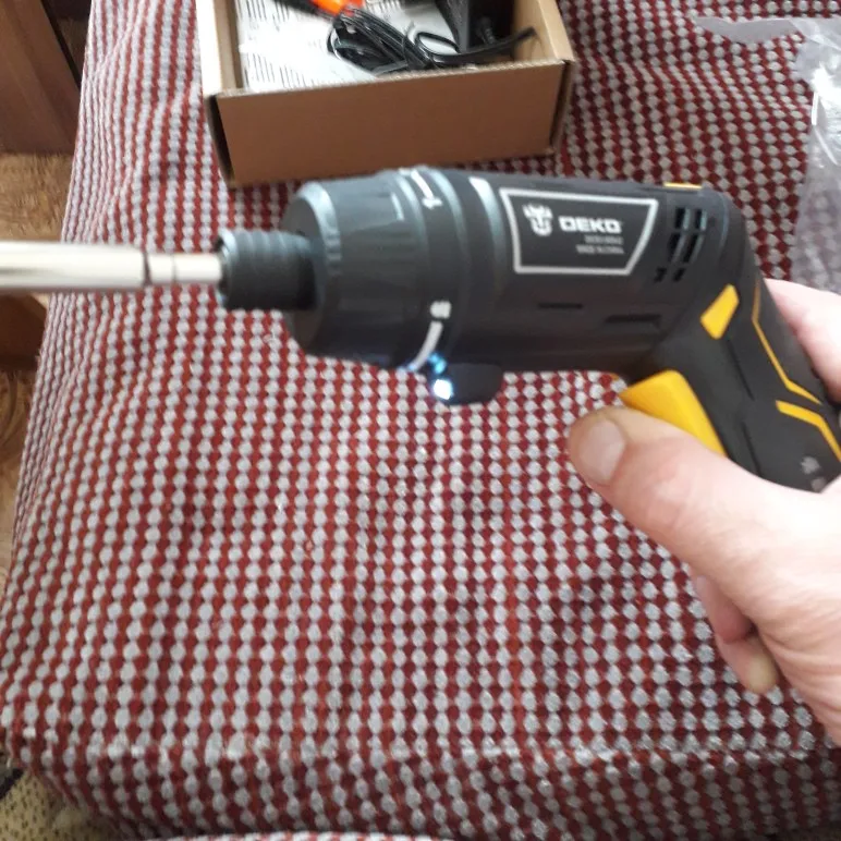Быстрая доставка, отвертка удобно лежит в руке, всё сделано аккуратно, есть подсветка, в ручке вмонтирован фонарик, есть индикатор зарядки. Все работает, продавцу спасибо.