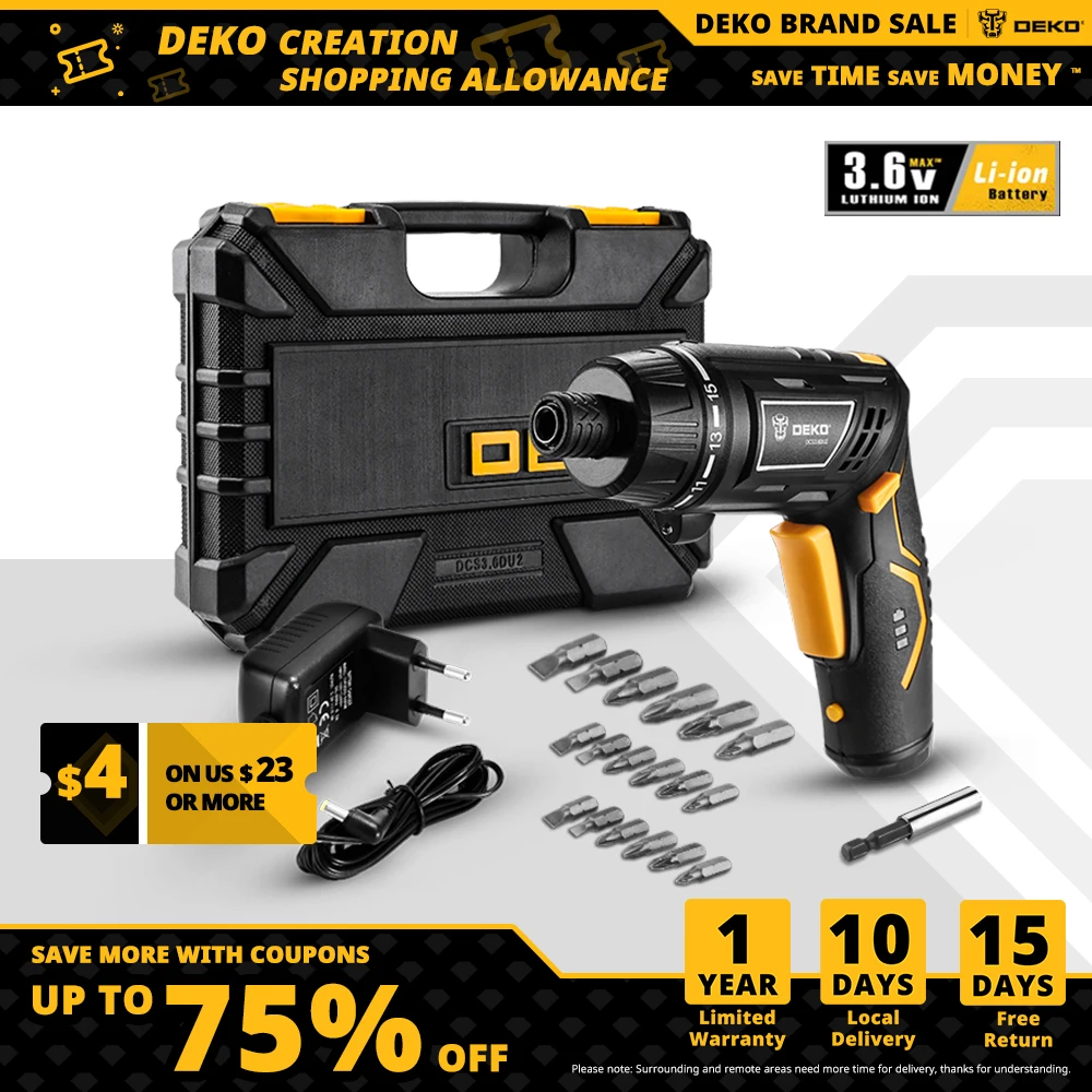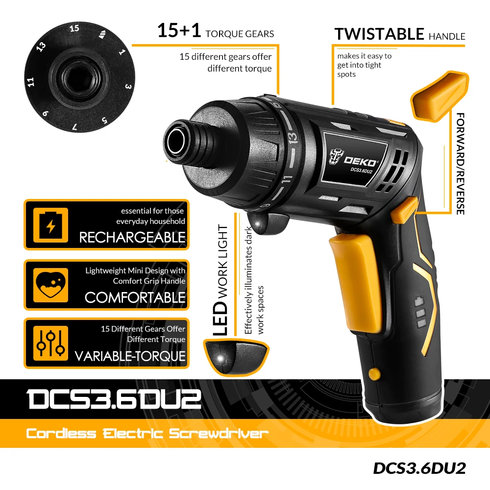 Шуруповерт DEKO DCS3.6DU2 Аккумуляторный с поворотной ручкой и светодиодным фонариком
