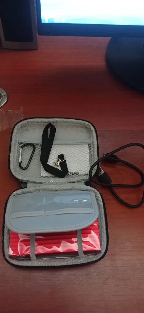 отличный продавец, заказ отправил быстро. как на снимке, качественный кейсик, кабель, карабин, тряпичный ремешек с защелкой( для понта, ненадежный), жёсткий диск. в компе диск определился сразу, свободно 698 ГБ( брал 750) .