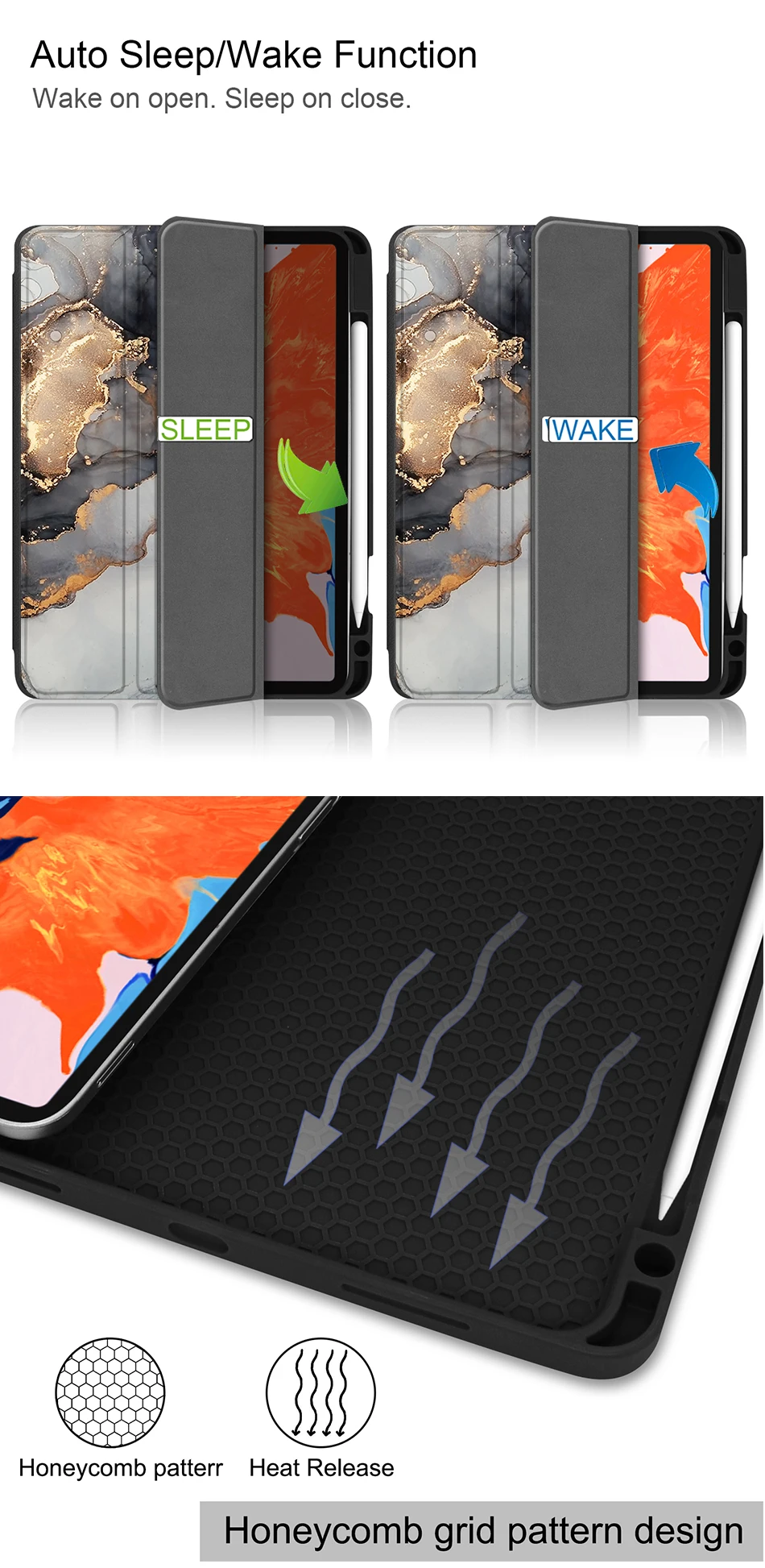 [Автоматический Режим сна/пробуждения]:Магнитная функция автоматического сна/пробуждения работает плавно и плавно, чтобы помочь продлить срок службы батареи вашего планшета.