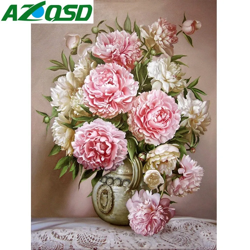 AZQSD Алмазная Цветочная мозаика Алмазный Набор для вышивки ваза полная квадратная Картинка из страз DIY Алмазная картина цветочный Декор для дома